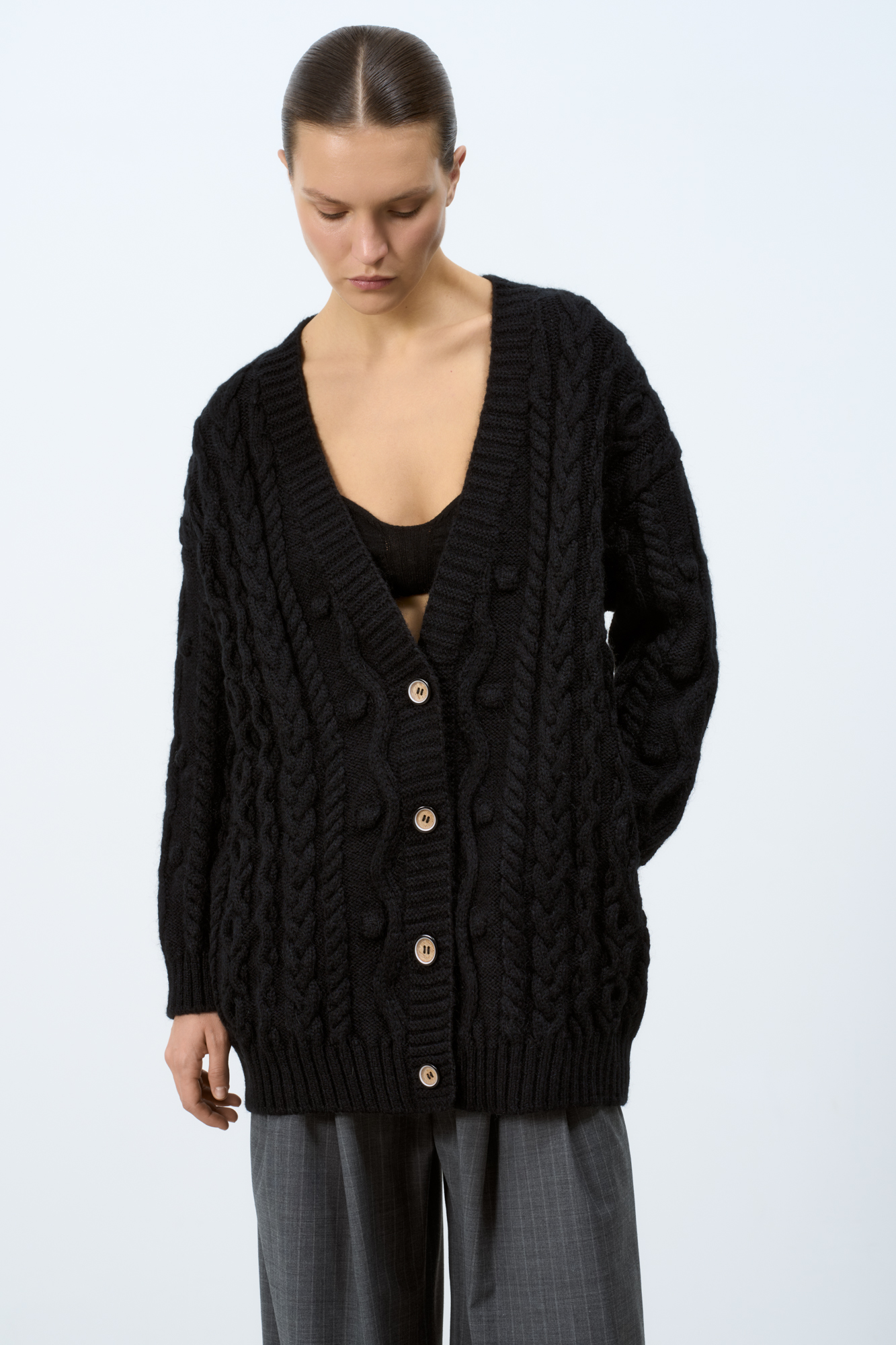 Трикотажный кардиган из шерсти альпака. Модель свободного сиэлута