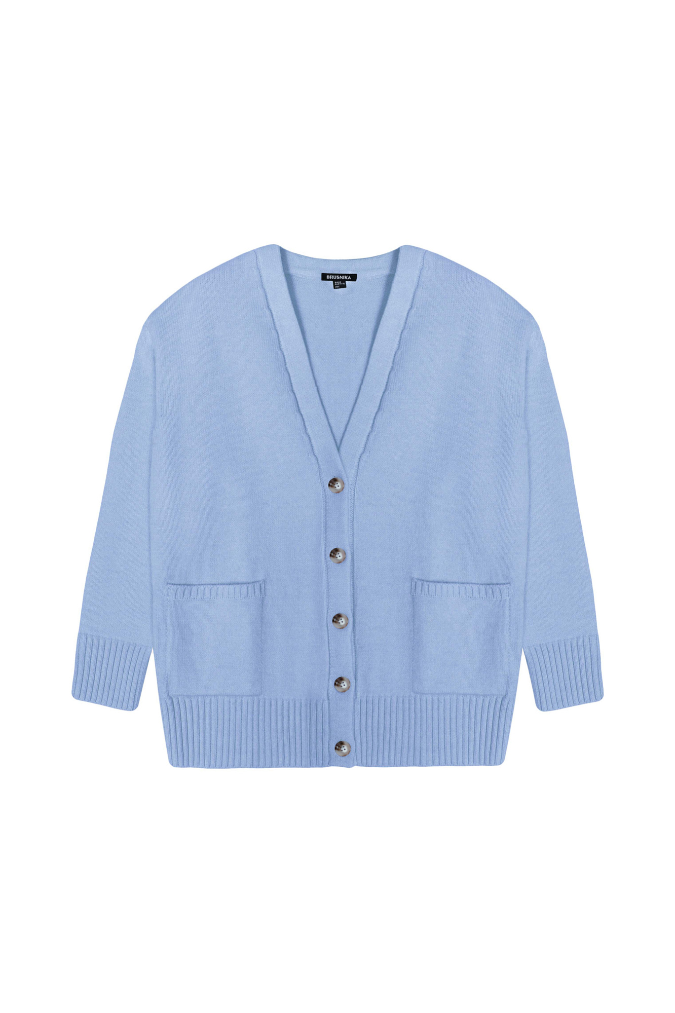 Удлиненный кардиган с добавлением шерсти Альпака на пуговицах с V-образным вырезом и карманами.