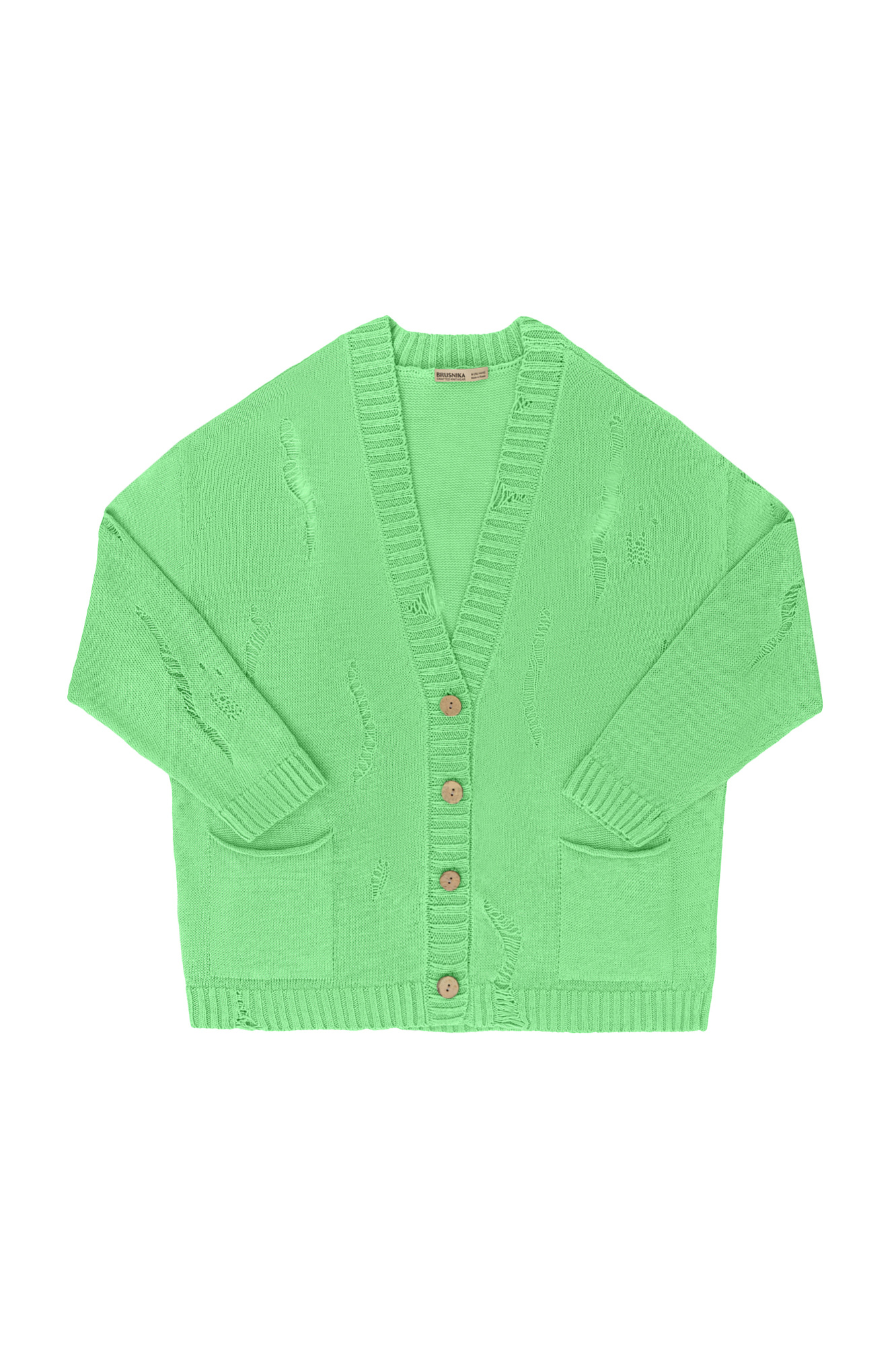 Кардиган из 100% льна с рваным узором. Дополнить образ можно топом.