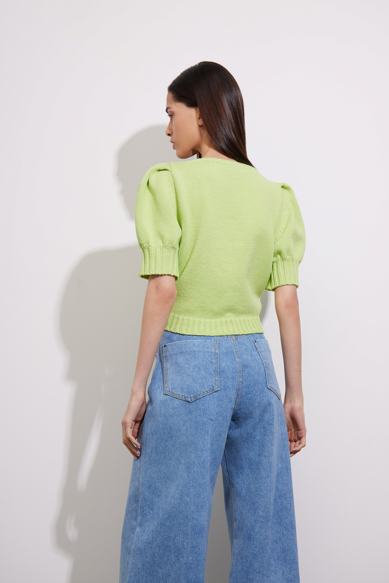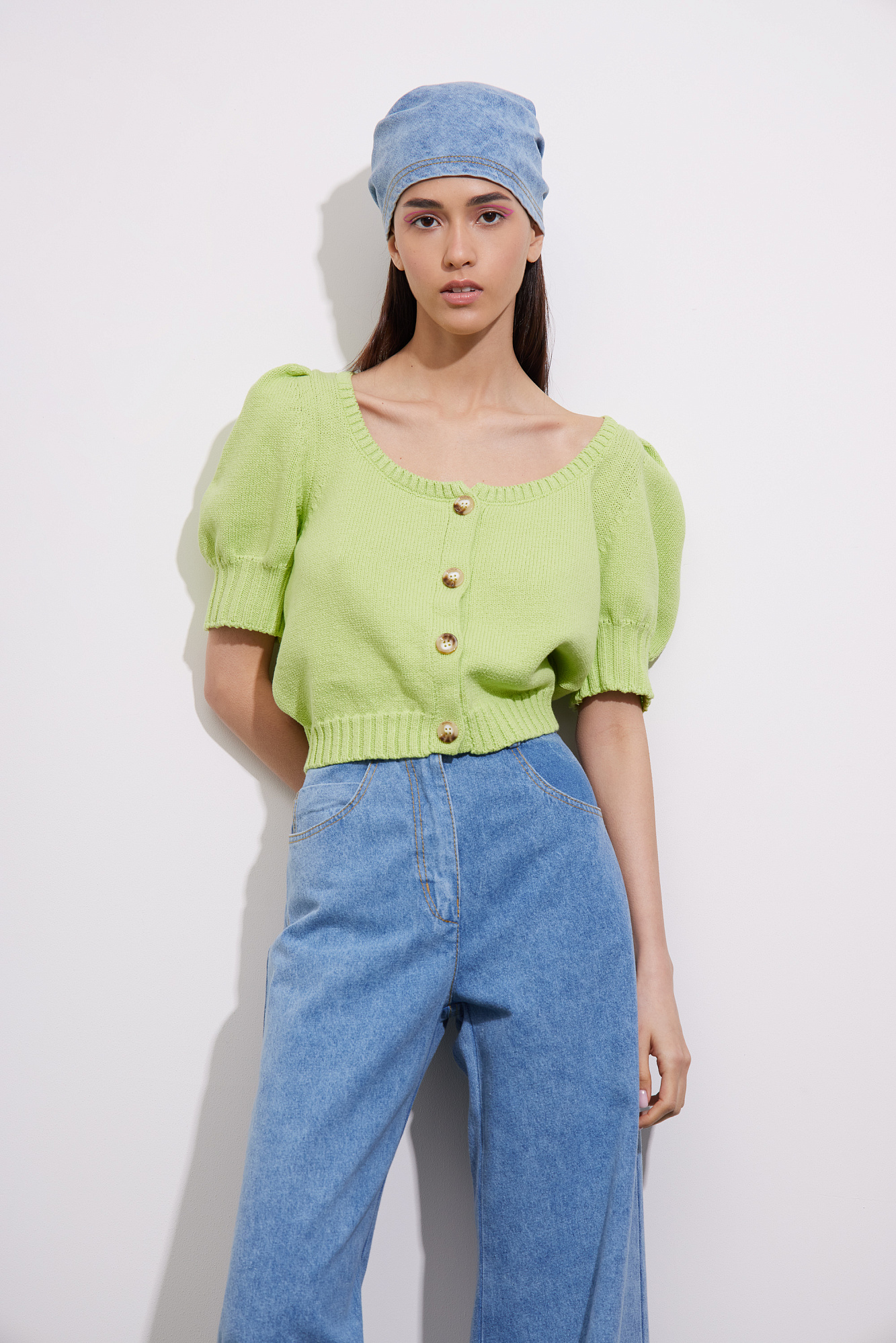 Кардиган из 100% хлопка. Рукава-фонарики, застежка на пуговицах.
