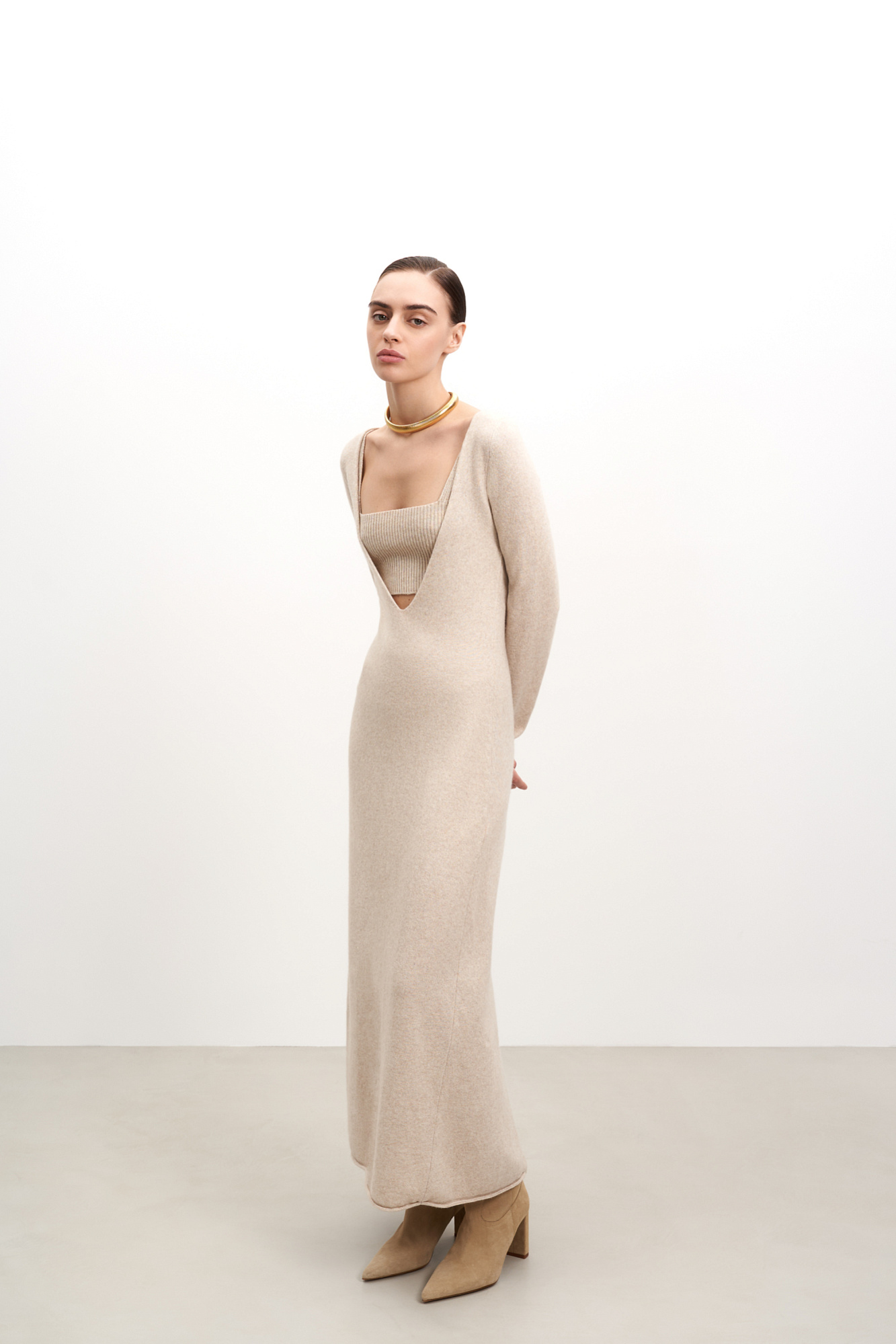 Трикотажное платье с топом в комплекте. Модель приталенного силуэта из шерсти и кашемира с V-образным вырезом.
