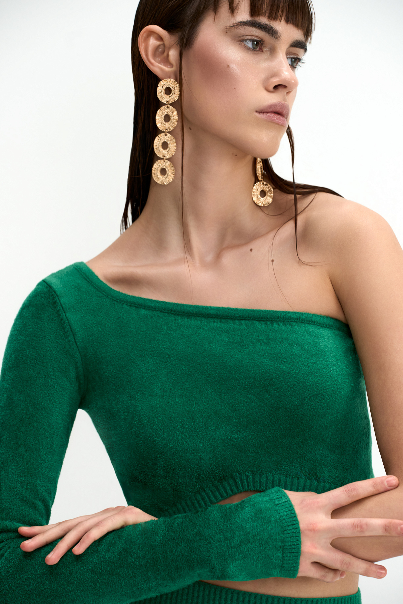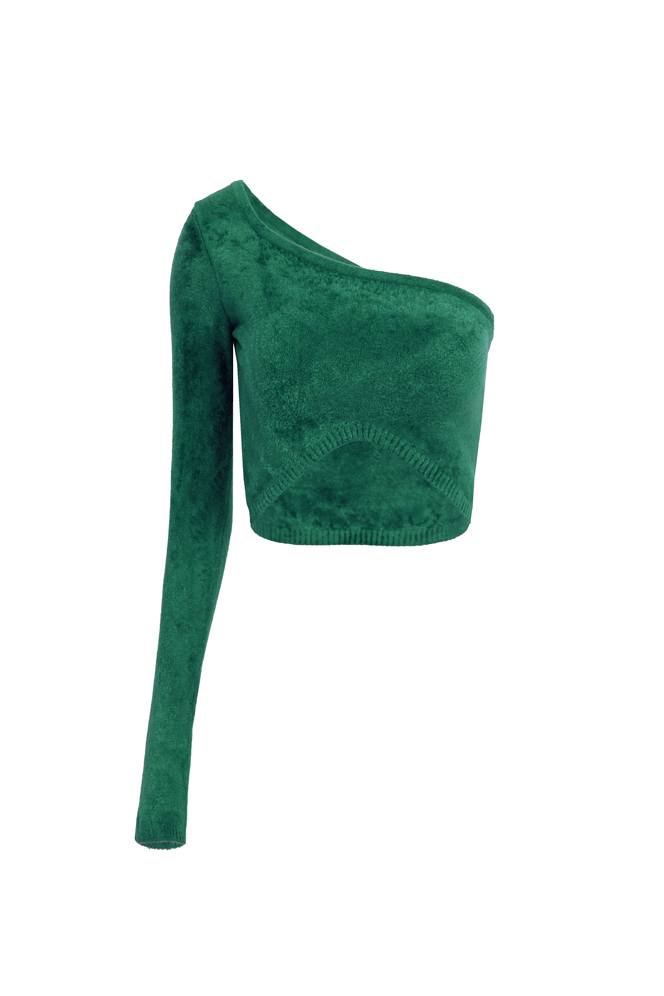 Укороченный топ из с одним рукавом из бархатистой вискозы.