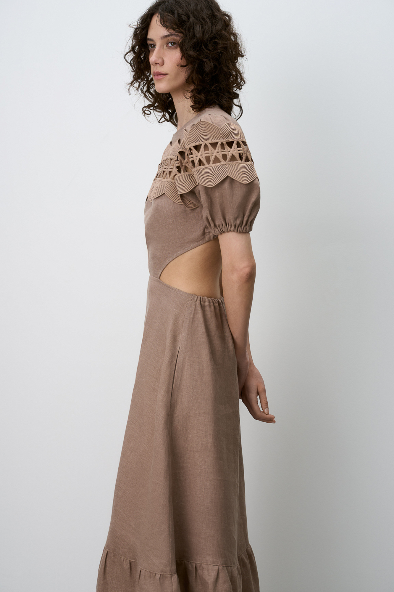 Льняное платье с кружевом