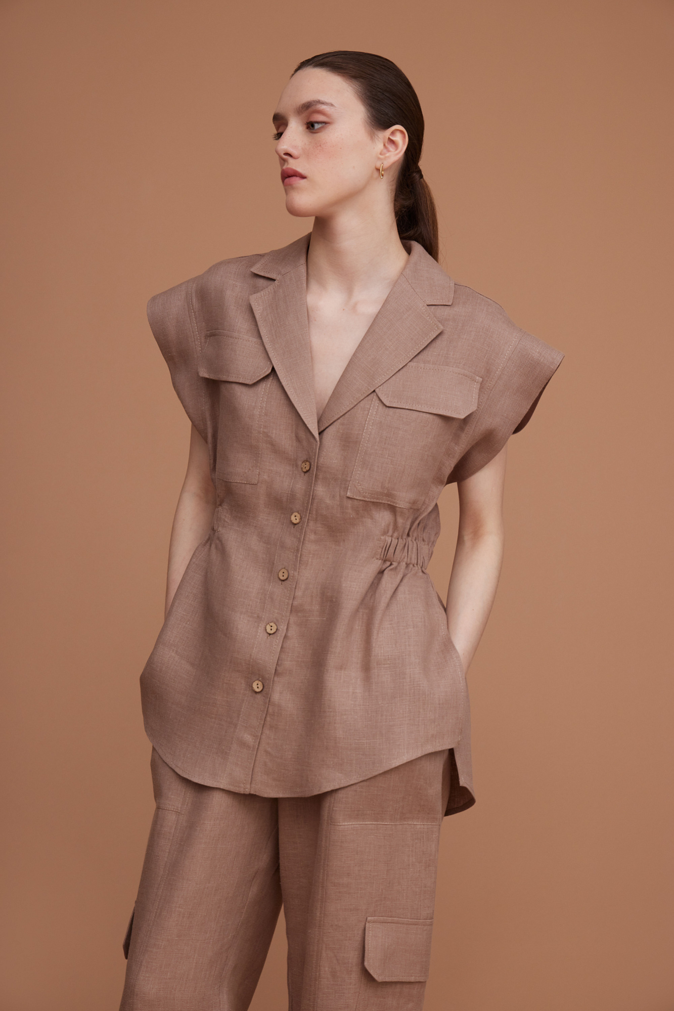 Рубашка из 100% льна без рукавов и с карманами на груди
