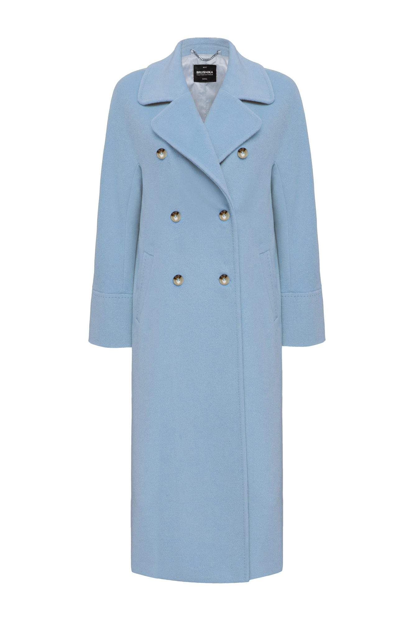 Двубортное пальто из шерсти с карманами. Отложной воротник с прямоугольными лацканами. Длинные рукава. Застегивается на пуговицы.