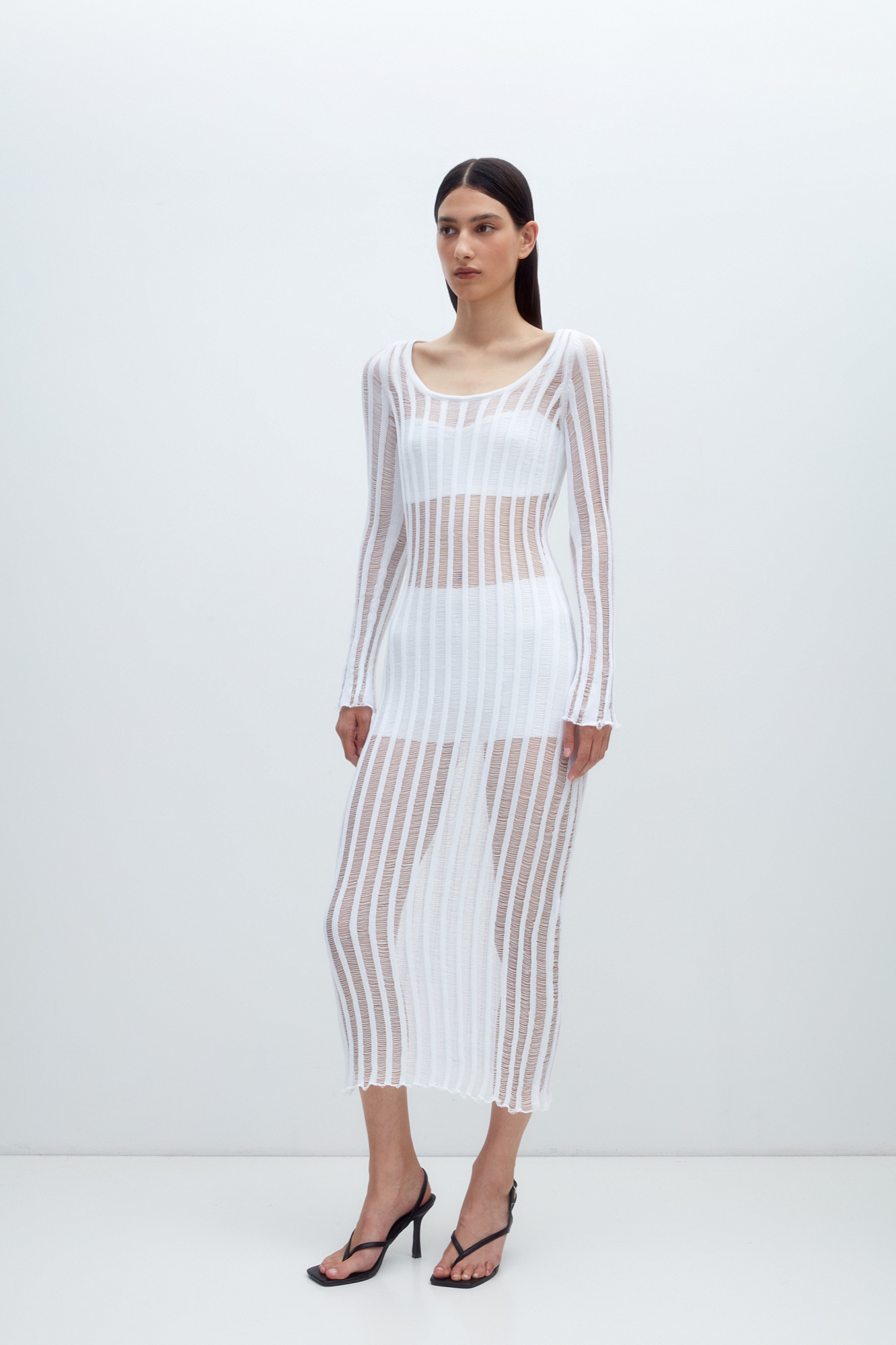 Трикотажное платье выполнено из мерсеризованного хлопка, который является прочным, гипоаллергенным и имеет характеристики лучше по сравнению с обычным хлопком.