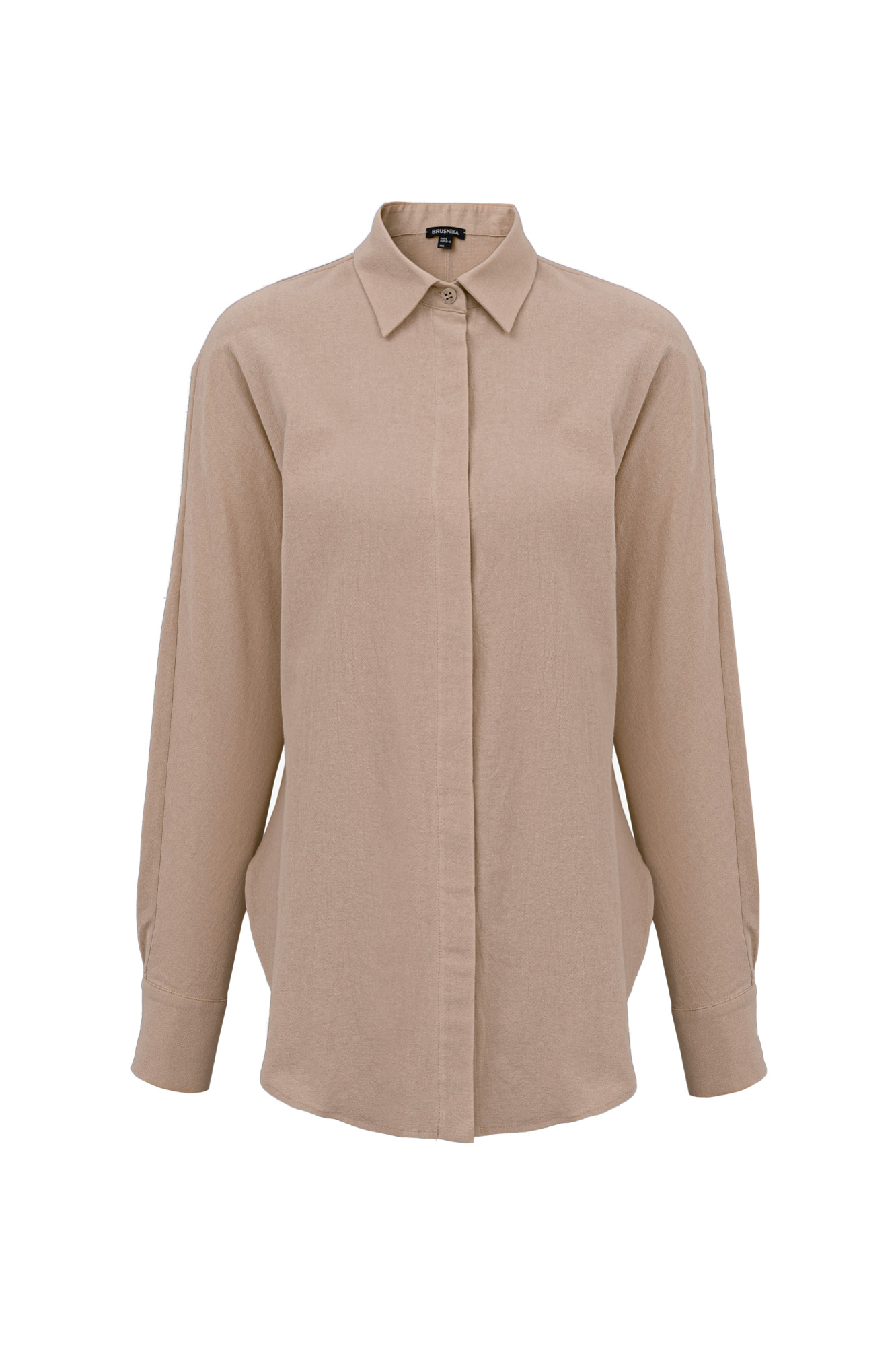 Классическая рубашка из 100% хлопка с потайной застежкой на пуговицы. Дополнить образ можно брюками.