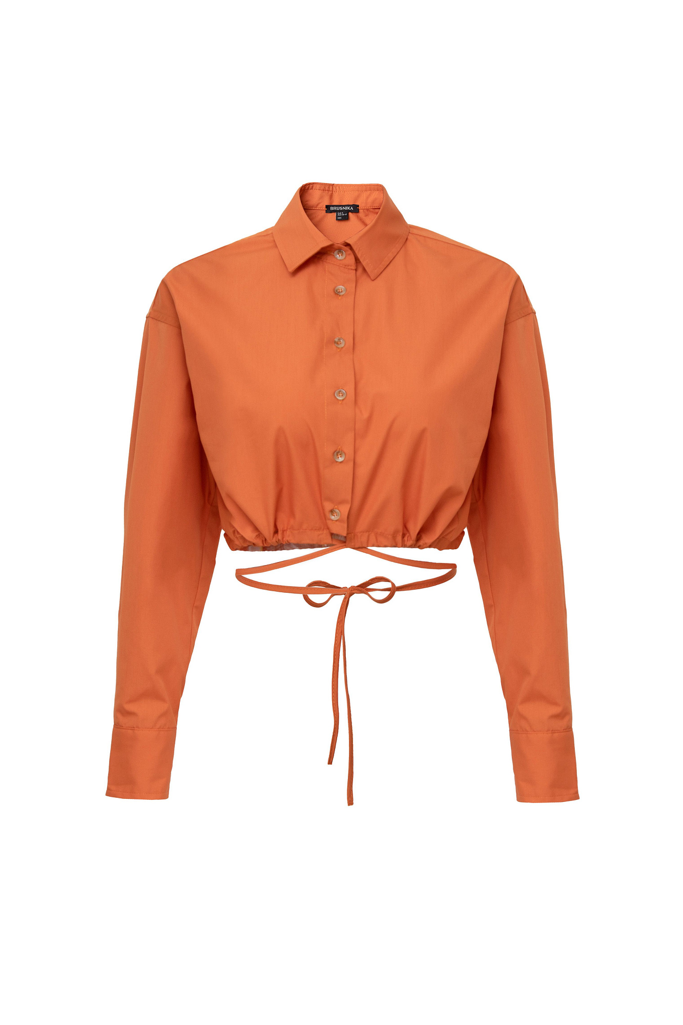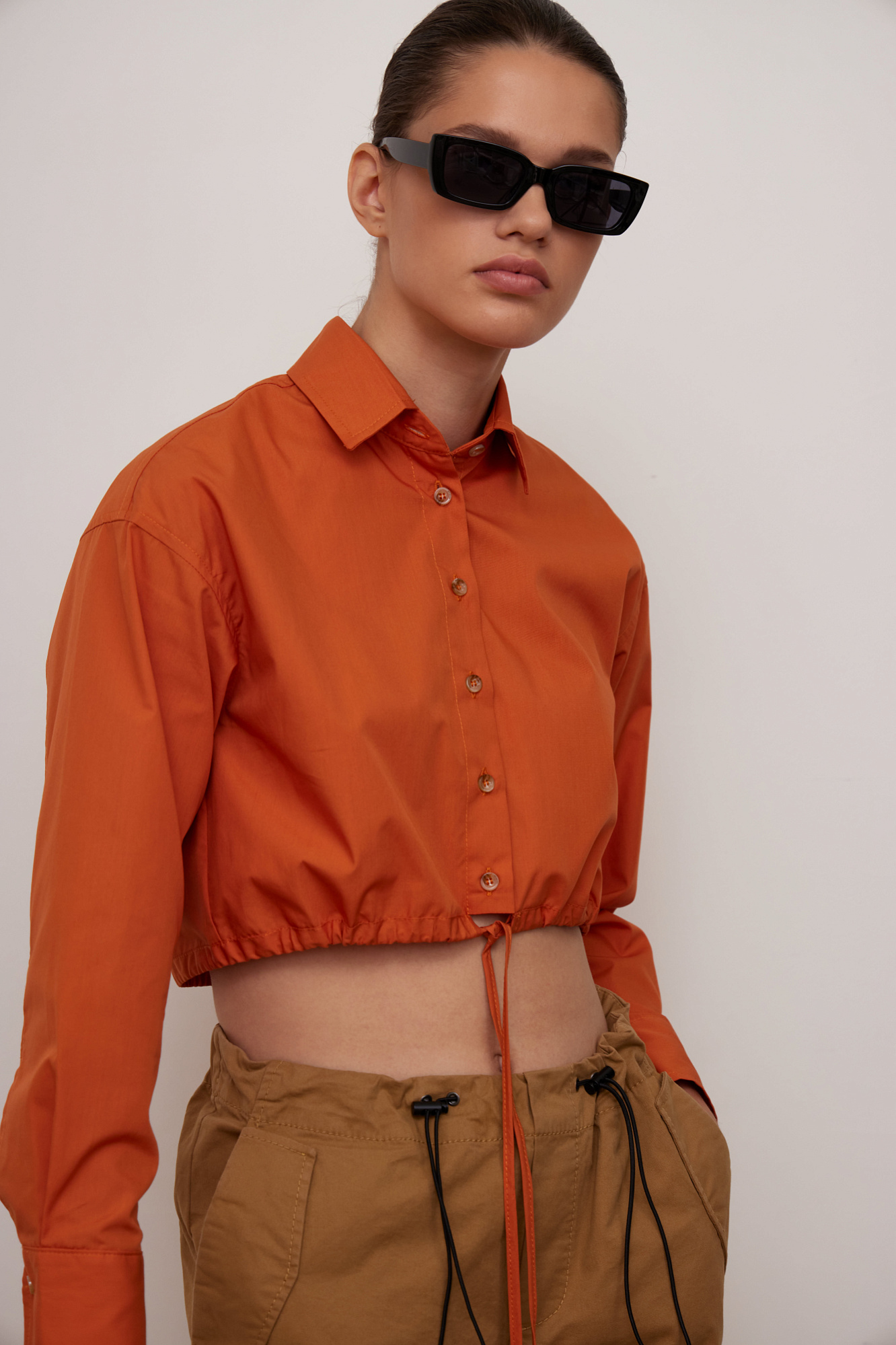 Укороченная рубашка из хлопка на пуговицах с кулиской.