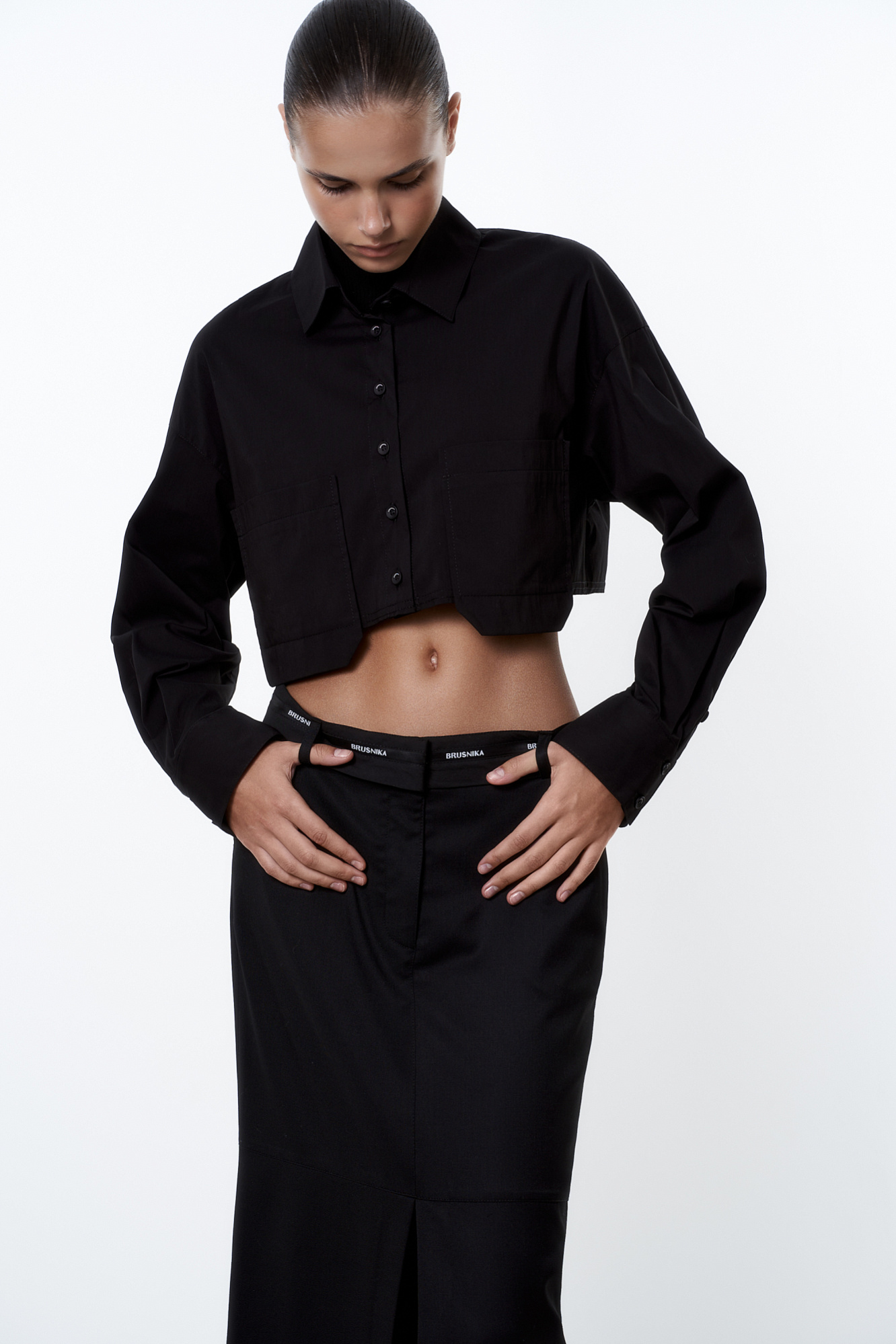 Укороченная рубашка с двумя накладными карманами