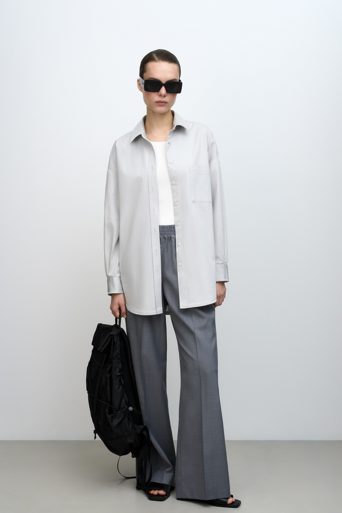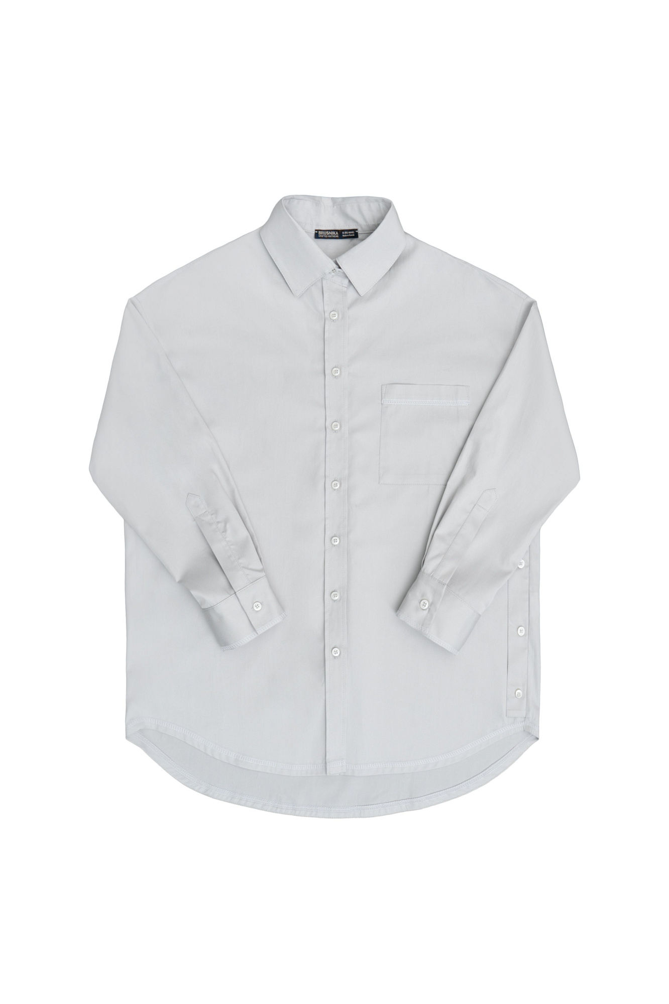 Рубашка прямого кроя из 100% хлопка с накладным карманом на груди. Отложный воротник, рукава с манжетами, закругленный нижний край. Модель имеет два вида застежка - классический вариант и застежка сбоку с имитацией запаха.