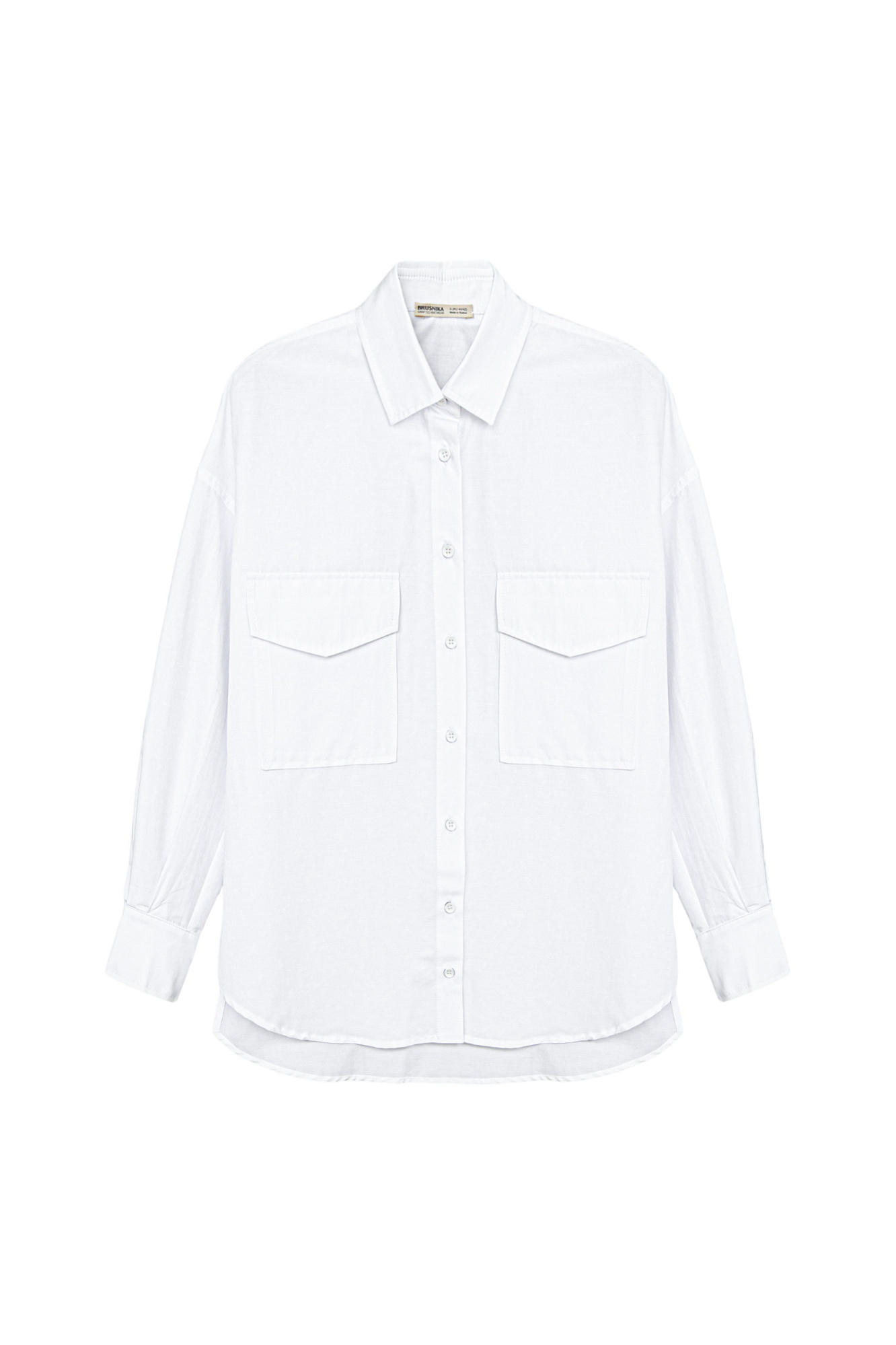 Классическая рубашка из хлопка с накладными карманами на груди.