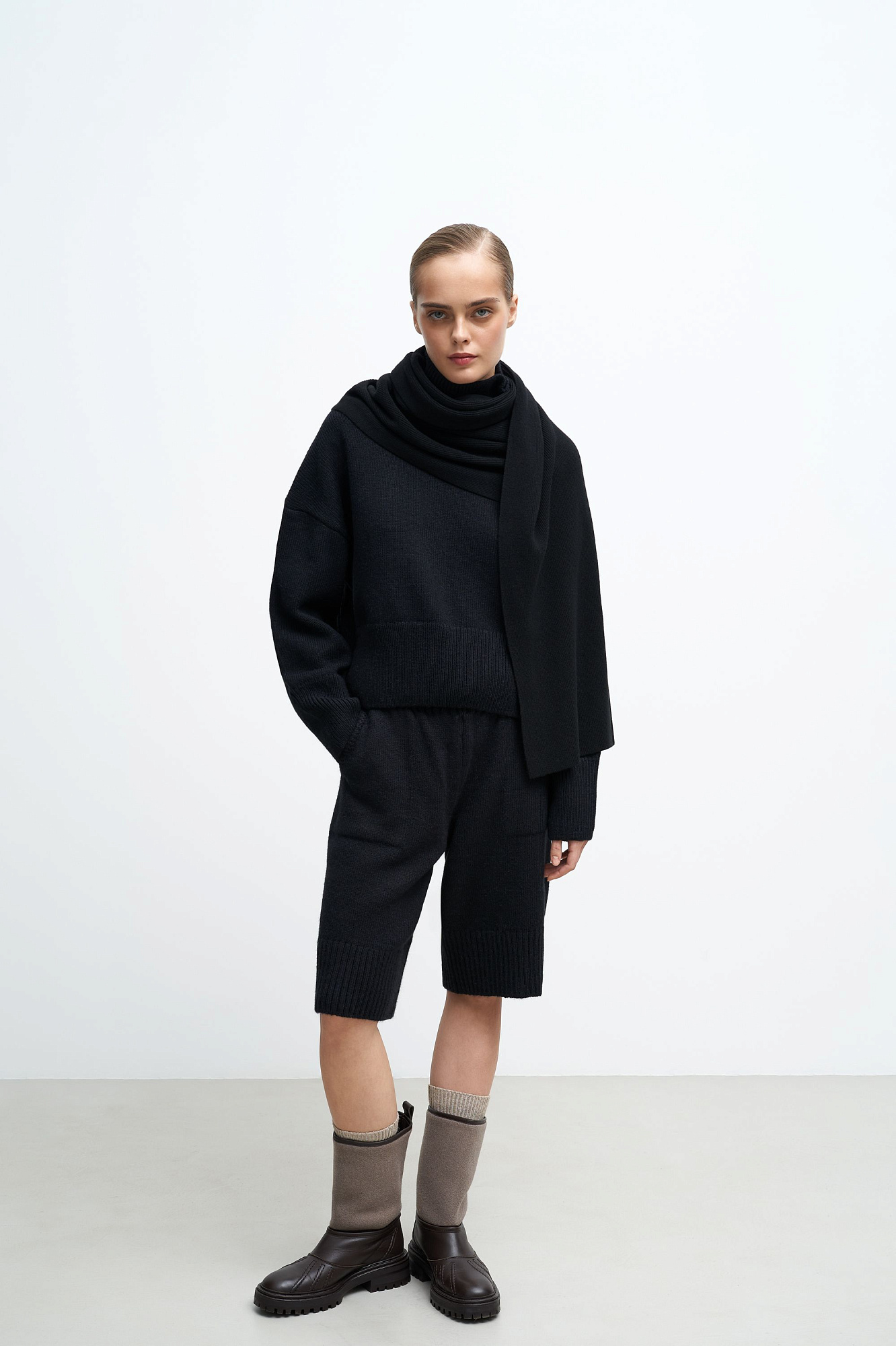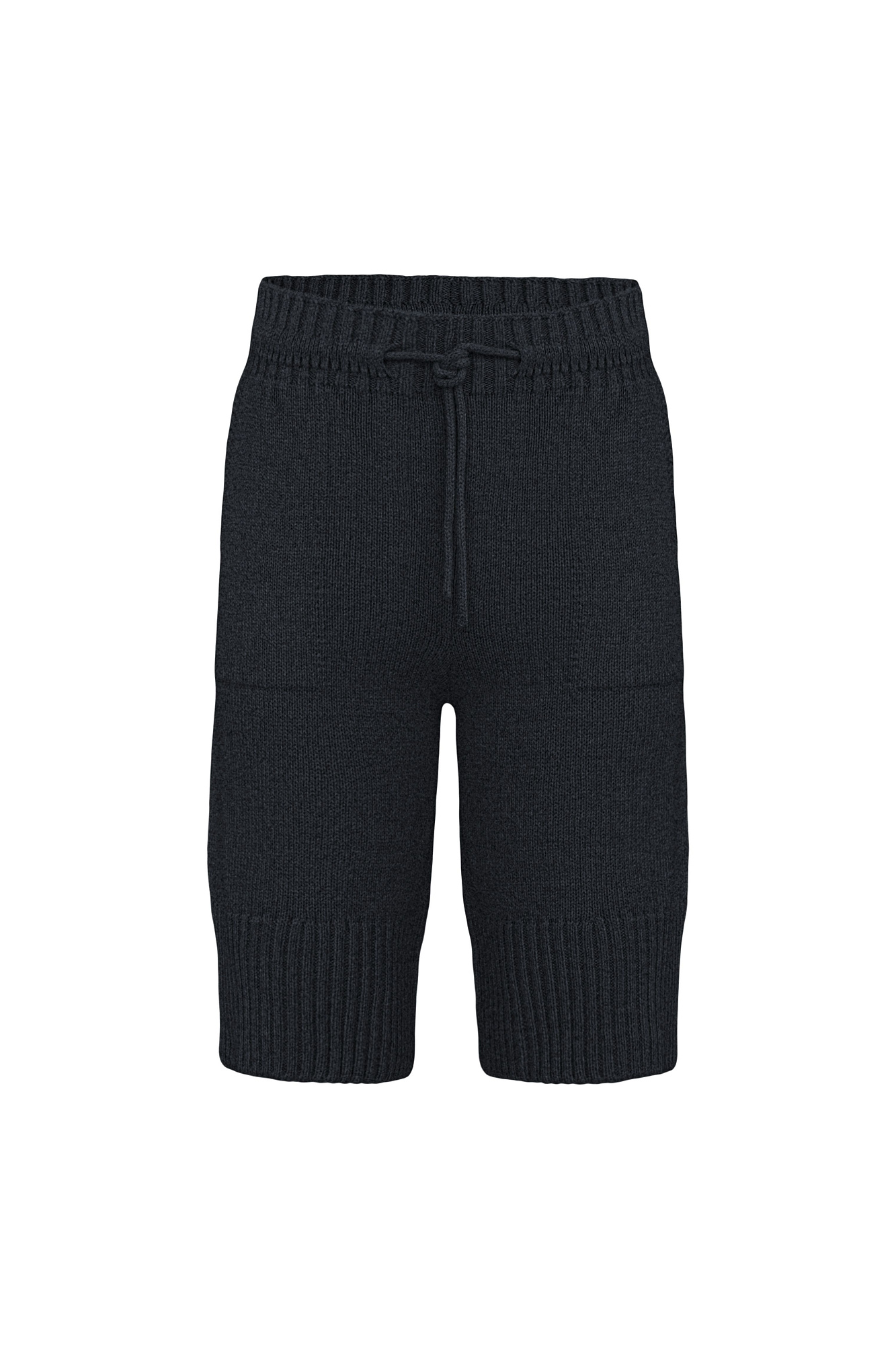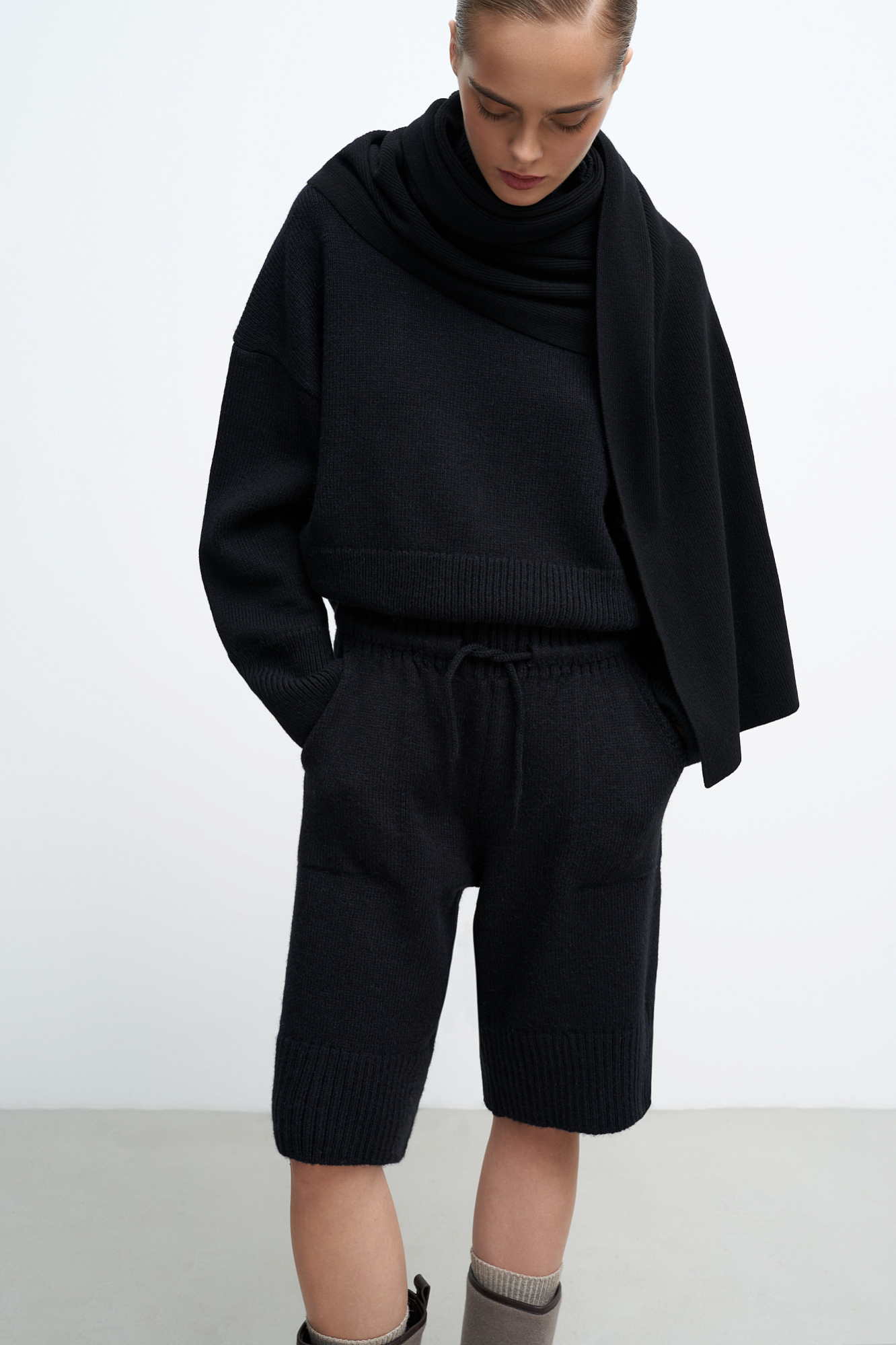Трикотажные шорты из шерсти альпака. Модель свободного силуэта с боковыми карманами и эластичным поясом на кулиске.