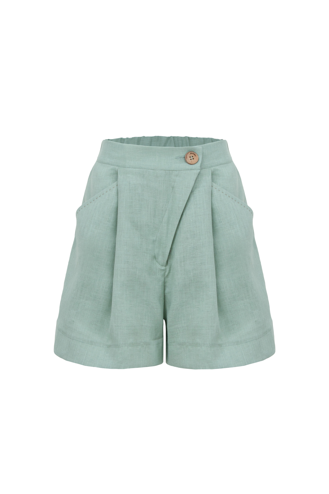 Шорты из 100% льна. Модель свободного силуэта с карманами по бокам и застежкой с потайной молнией и пуговицей.