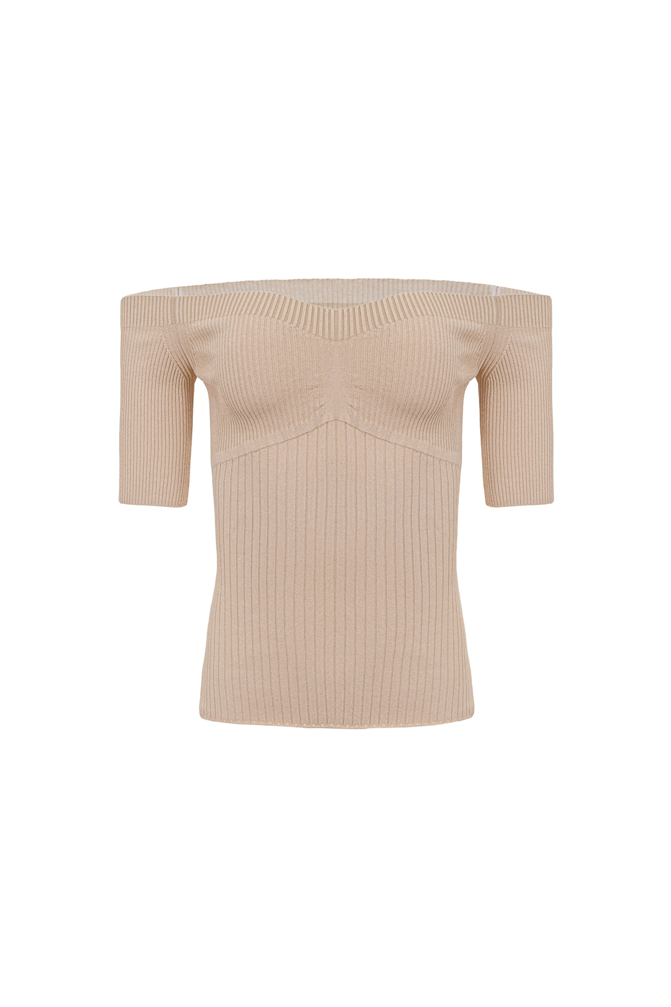 Трикотажный топ в рубчик с открытыми плечами.