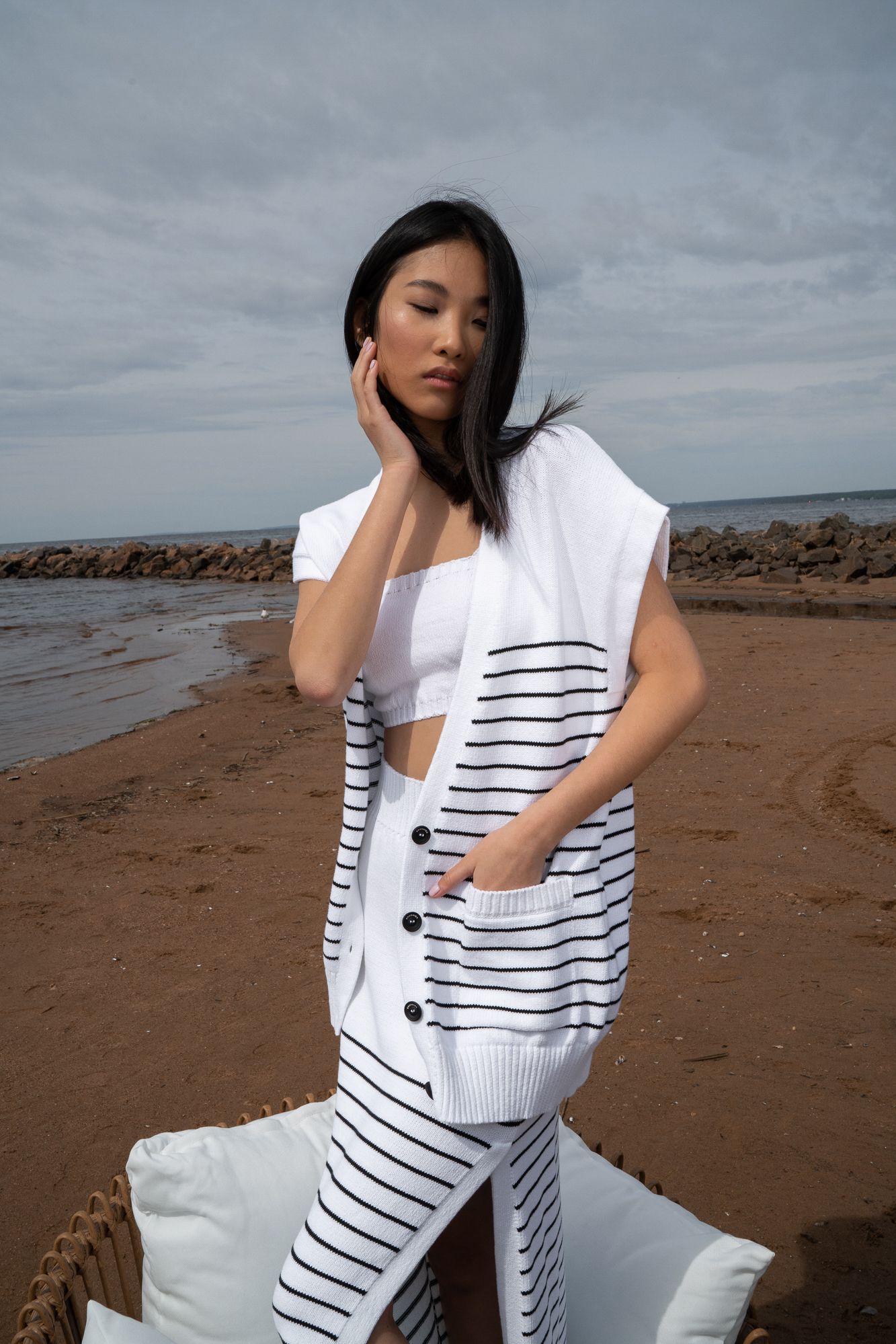 Вязанный хлопковый топ на бретелях.