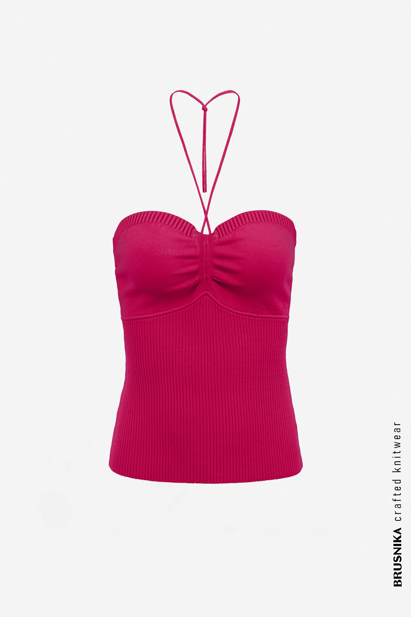 Топ из вискозы с открытыми плечами и драпировкой на груди.