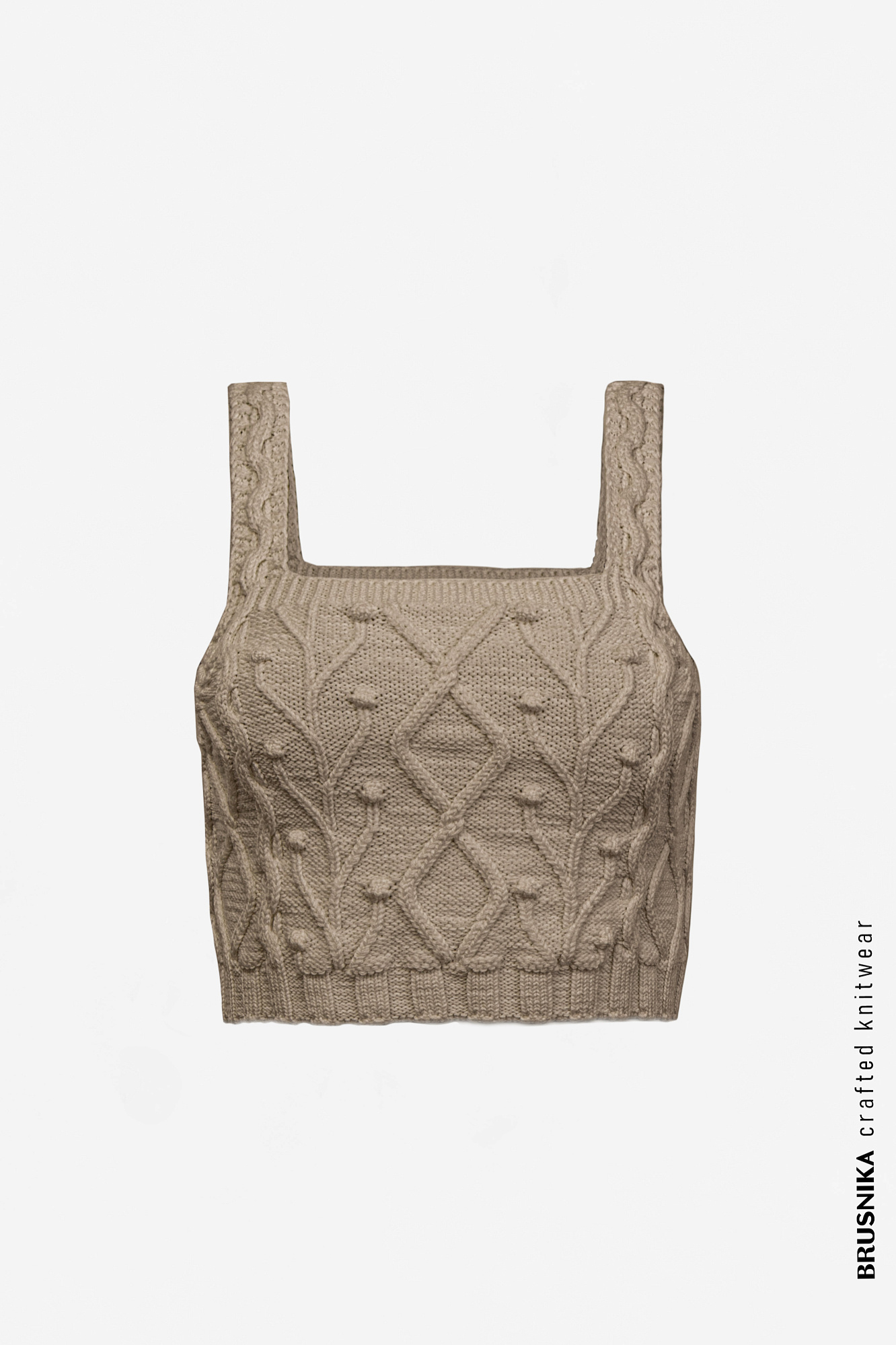 Фактурный хлопковый кроп-топ на широких лямках сочетается как с брюками, так и с юбками.
