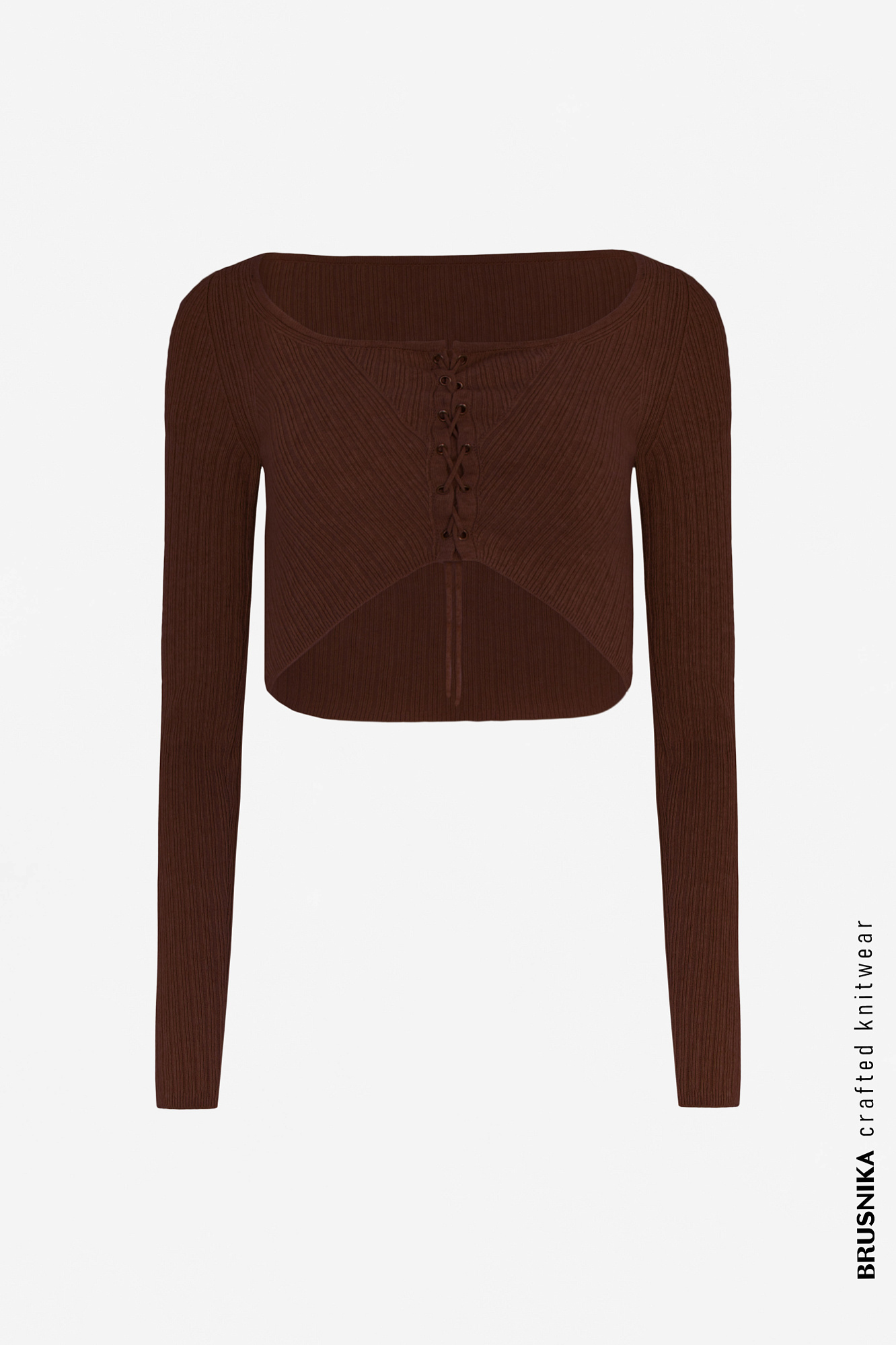 Кашемировый топ с длинным рукавом и шнуровкой.