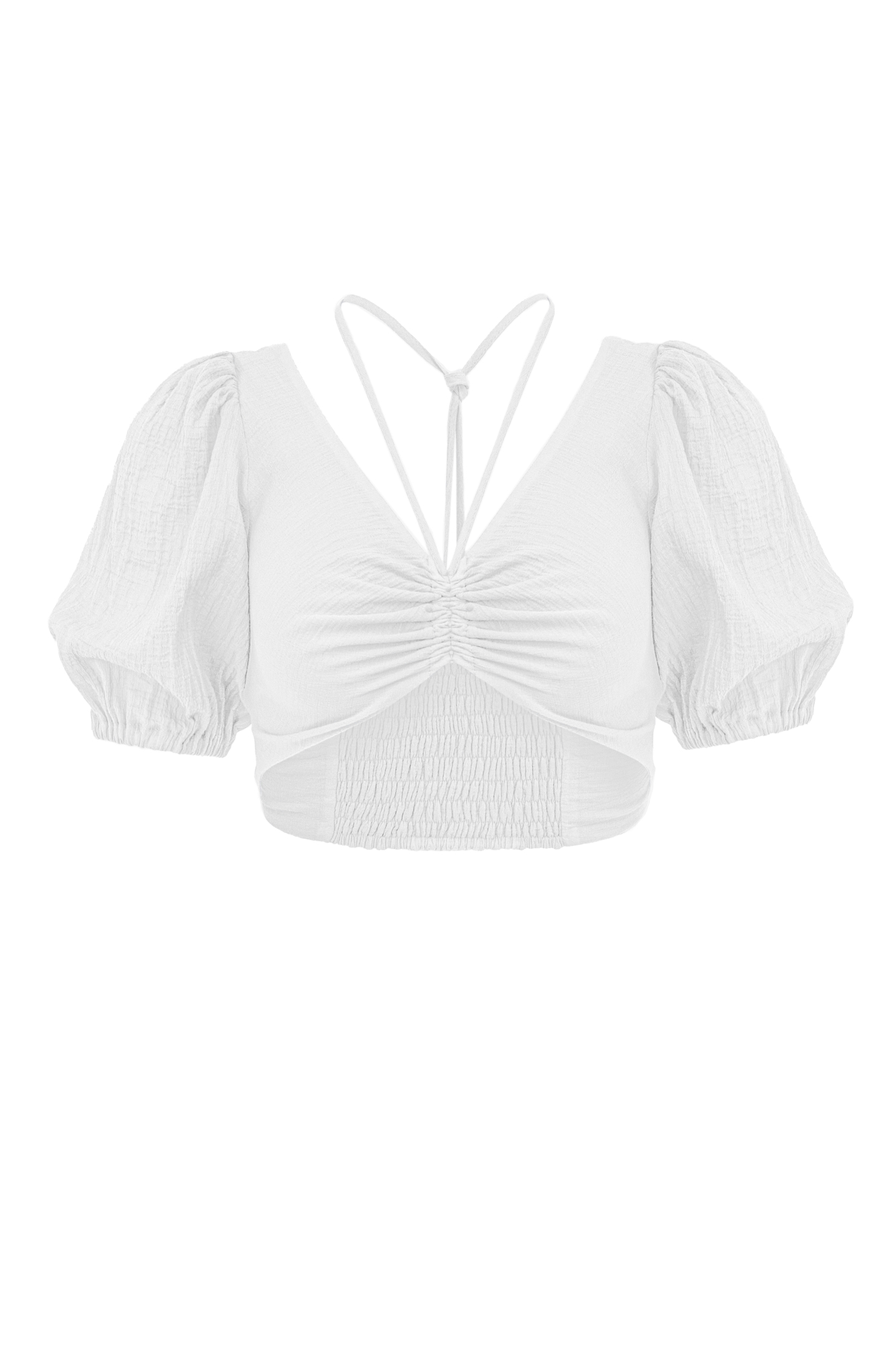 Короткий топ из 100% хлопка на тонкой кулиске вокруг шеи.