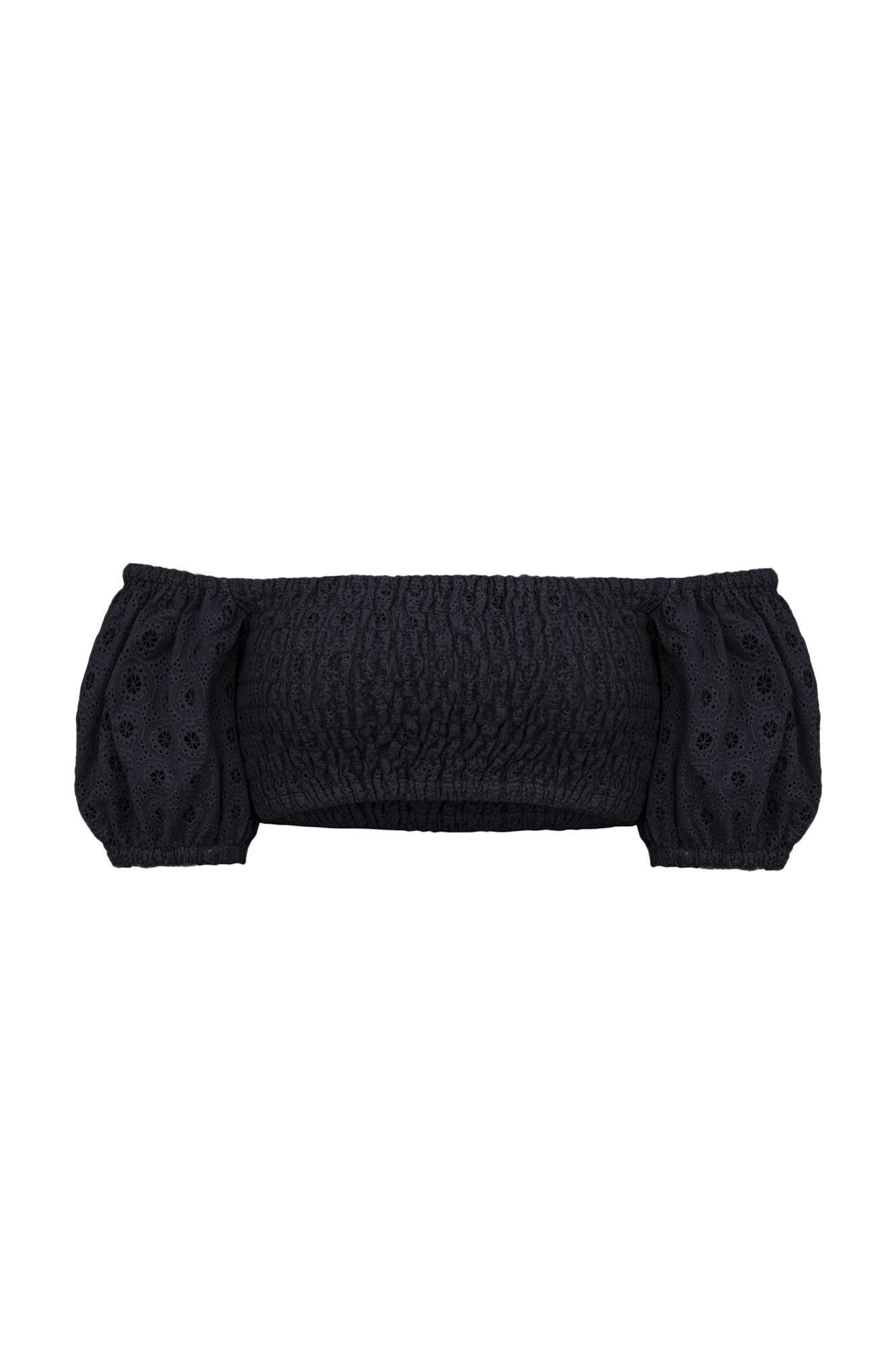 Ажурный укороченный топ из 100% хлопка с открытыми плечами.
