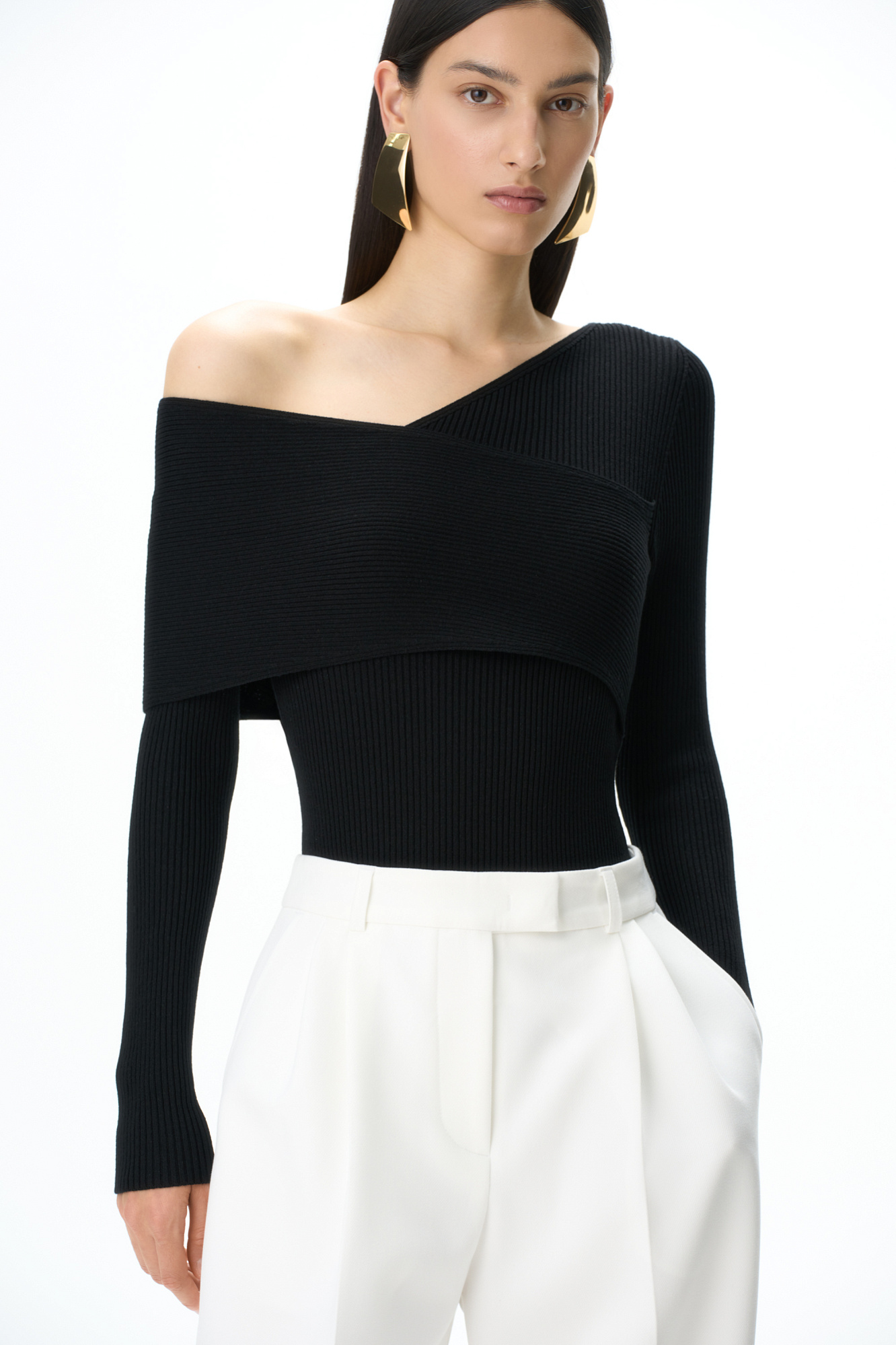 Трикотажный топ из вискозы с длинным рукавом и открытым плечом