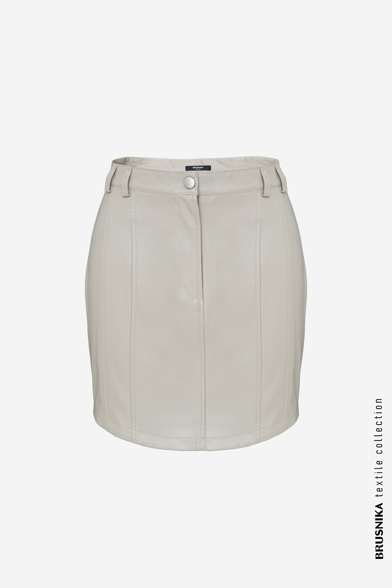 Юбка длины мини из экокожи с рельефными швами и накладными карманами сзади. Потайная застежка на молнию. Паты на поясе для ремня.