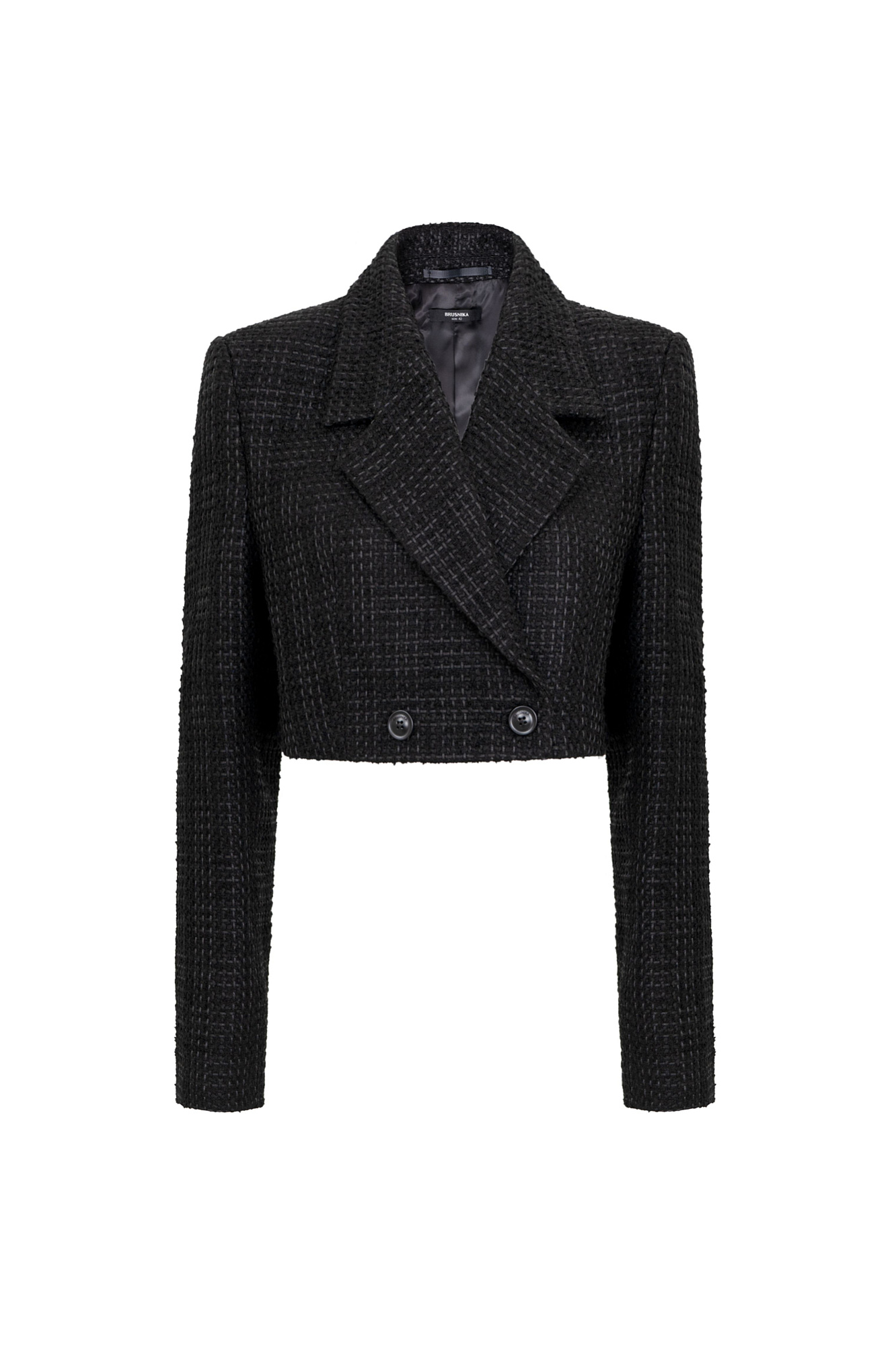 Укороченный жакет. Отложной воротник с прямоугольными лацканами. Модель приталенного силуэта с подкладкой.