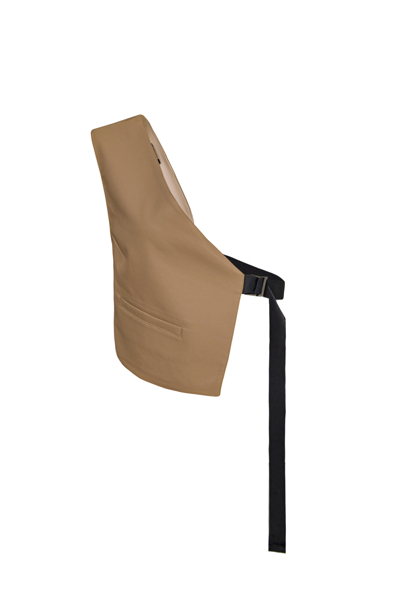 Жилет из экокожи используется как аксессуар, предпочтительно с рубашками. Фиксируется эластичным ремнем