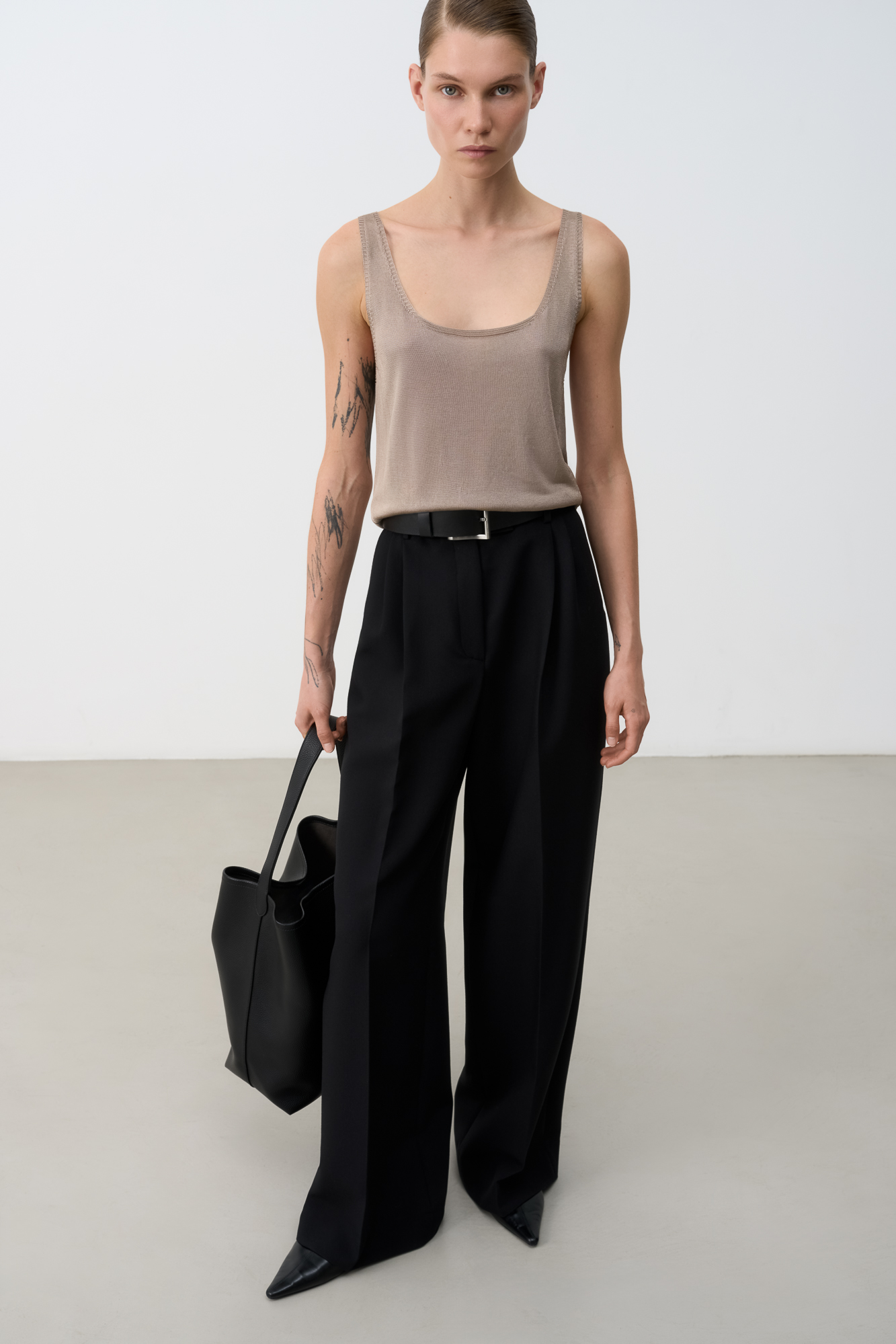 Цельновязаная майка из 100% вискозы на тонких бретелях.