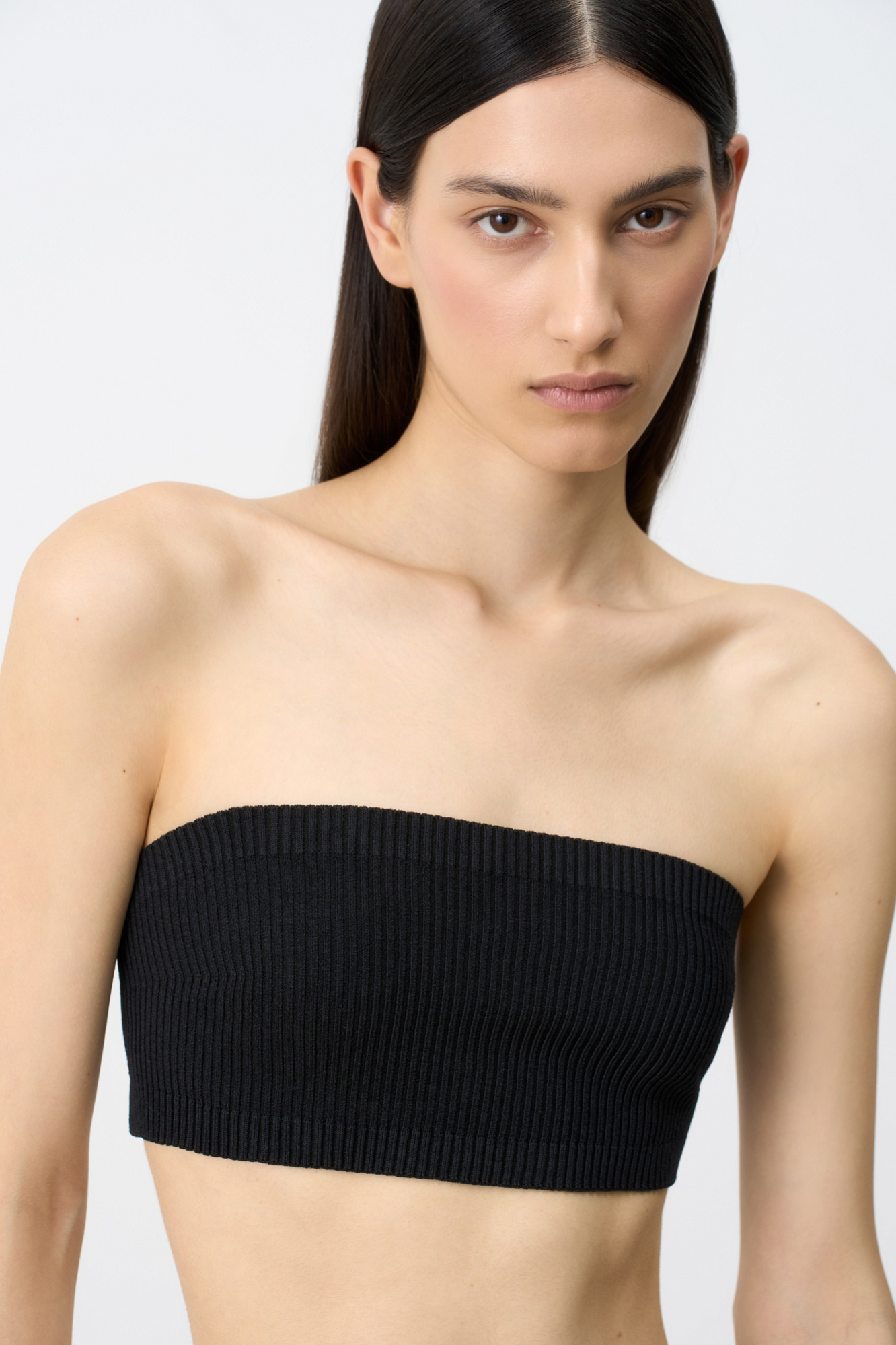Трикотажный топ-бандо в рубчик.