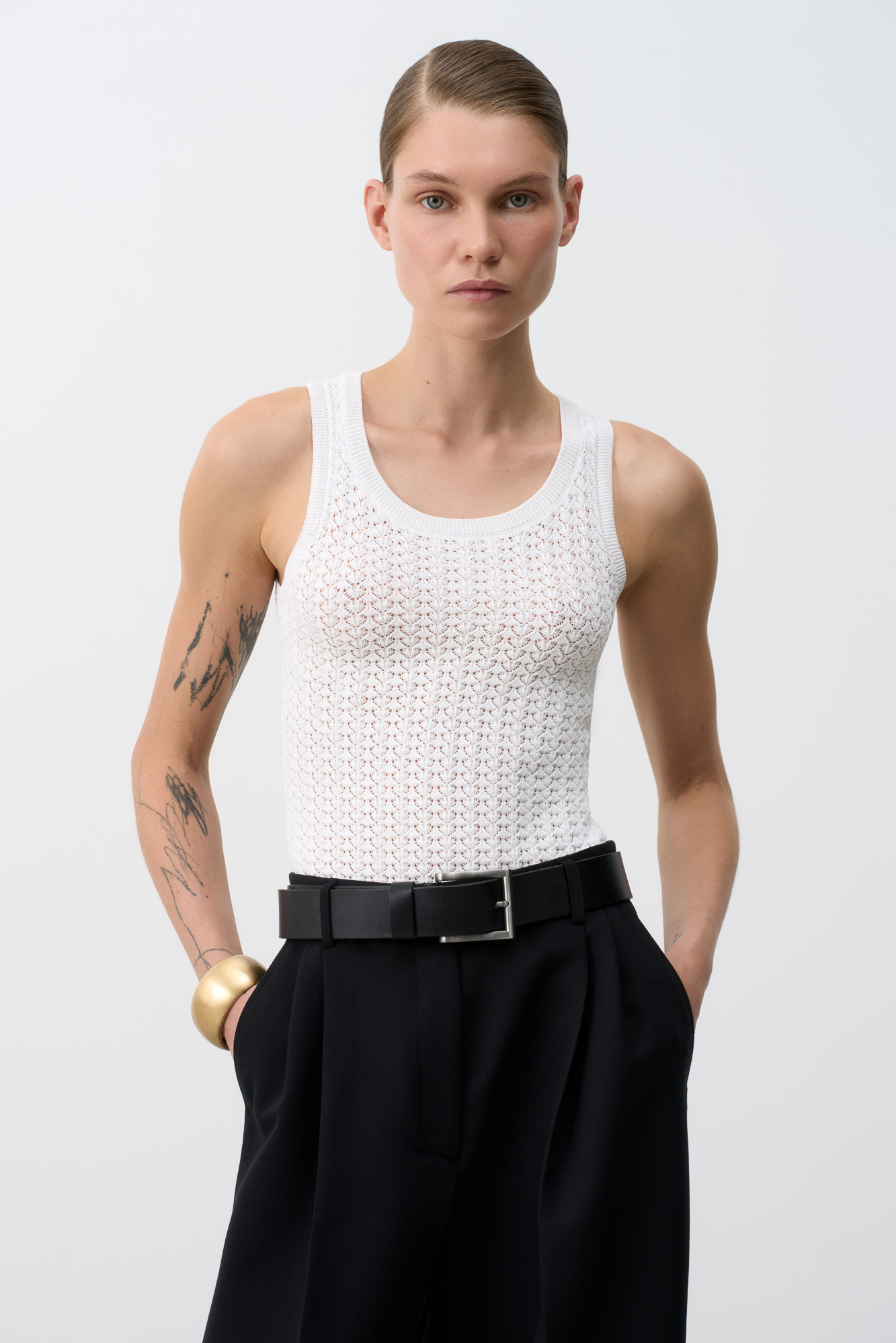 Трикотажный топ с ажурным рисунком