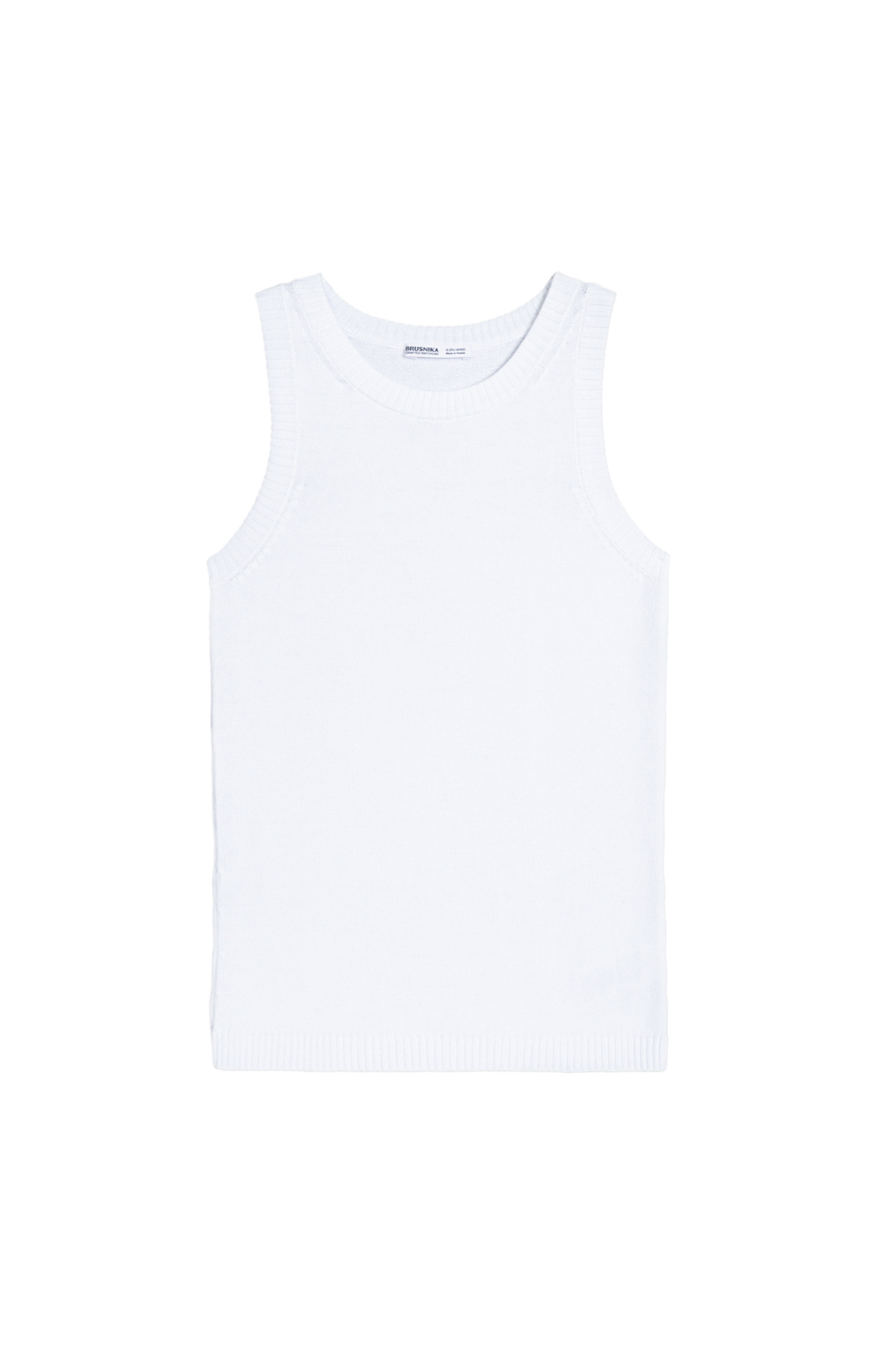 Трикотажный топ из 100% хлопка без рукавов. Модель приталенного силуэта с круглым вырезом горловины. Края изделия выполнены в рубчик.