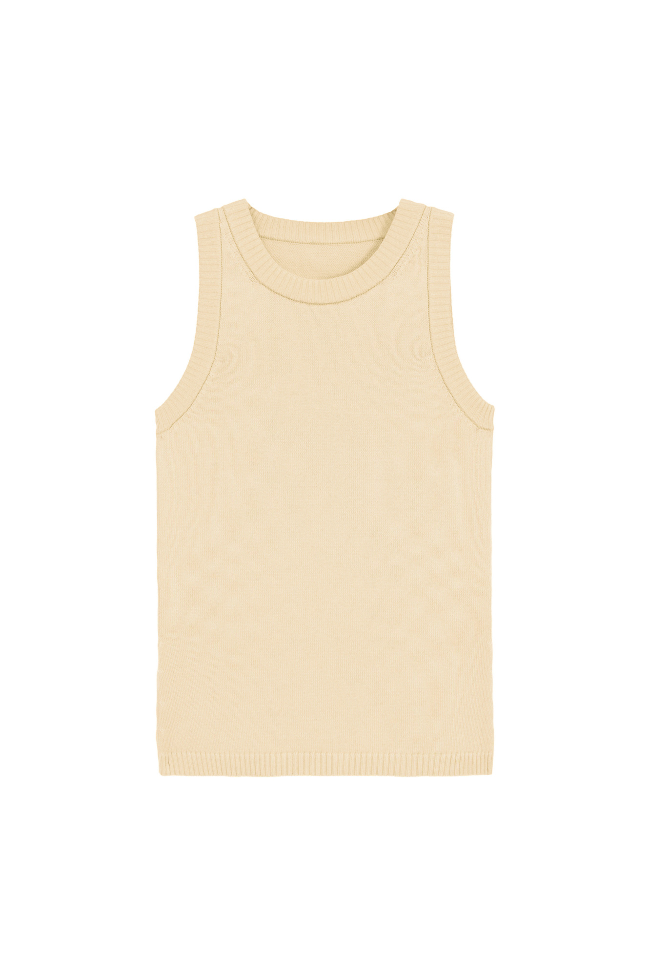 Трикотажный топ из 100% хлопка без рукавов. Модель приталенного силуэта с круглым вырезом горловины. Края изделия выполнены в рубчик.