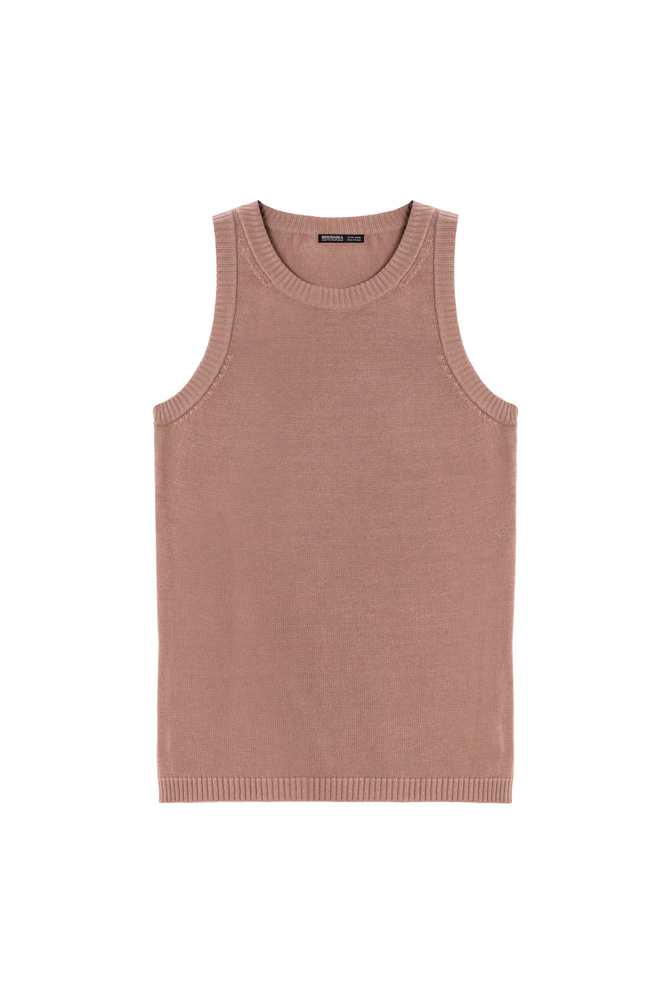 Трикотажный топ из 100% хлопка без рукавов. Модель приталенного силуэта с круглым вырезом горловины. Края изделия выполнены в рубчик.
