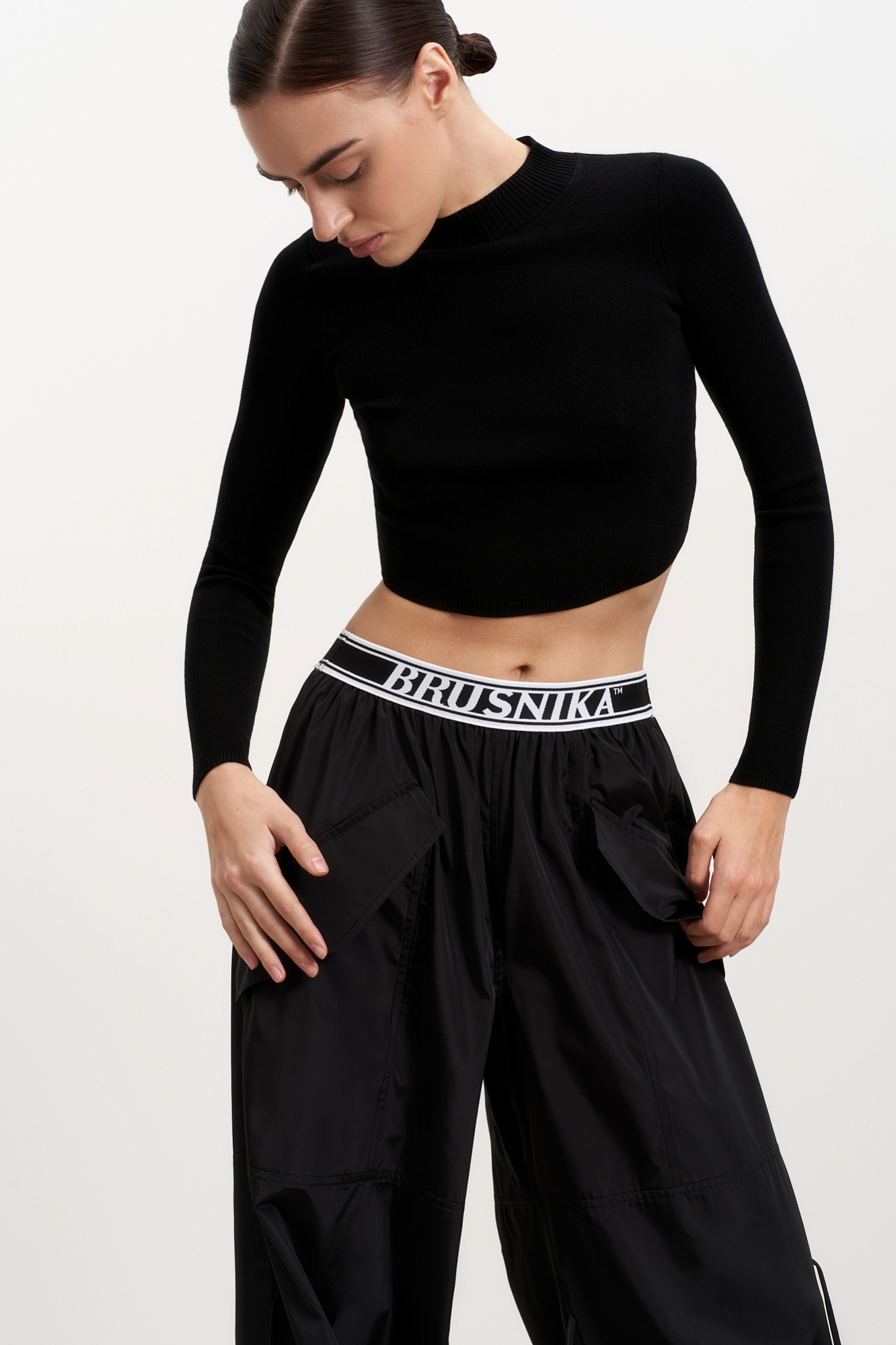 Трикотажный топ из мягкой вискозы с асимметричным низом и длинным рукавом.