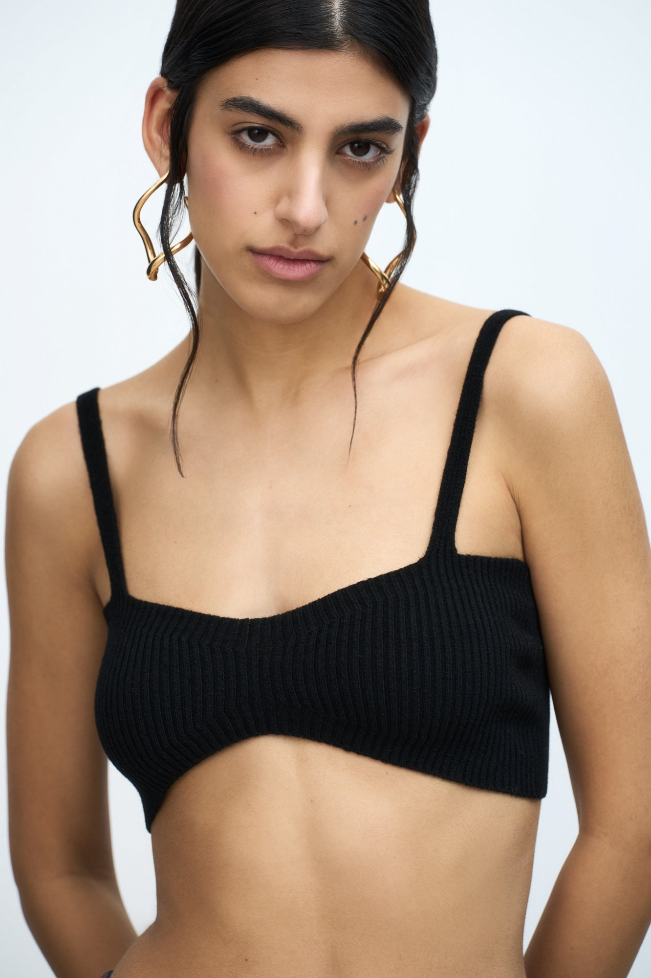 Трикотажный топ на тонких бретелях из шерсти с добавлением кашемира.
