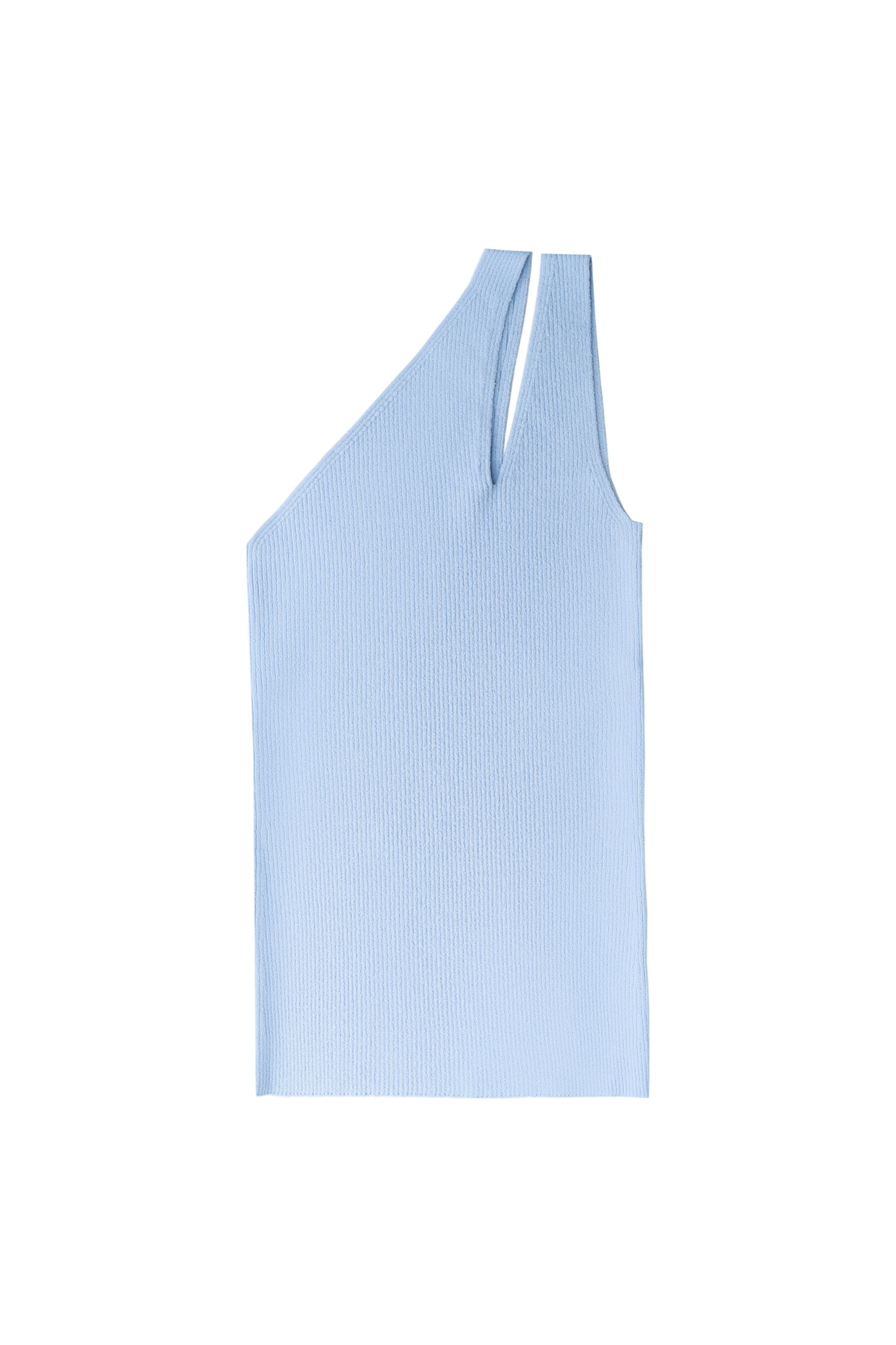 Трикотажный топ из вискозы в рубчик. Модель без рукавов, с двойной лямкой одно на плечо.