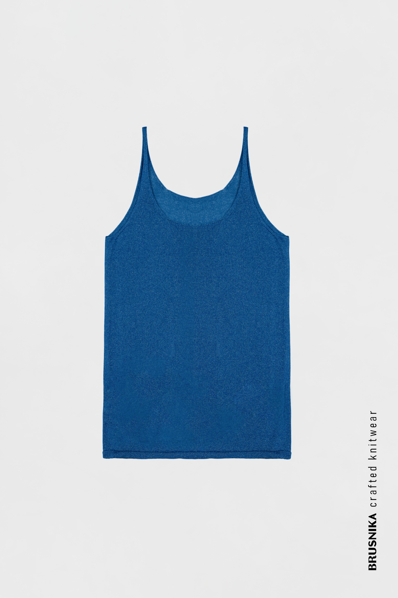 Цельновязаная полупрозрачная майка из вискозы. Круглый вырез и тонкие бретели.