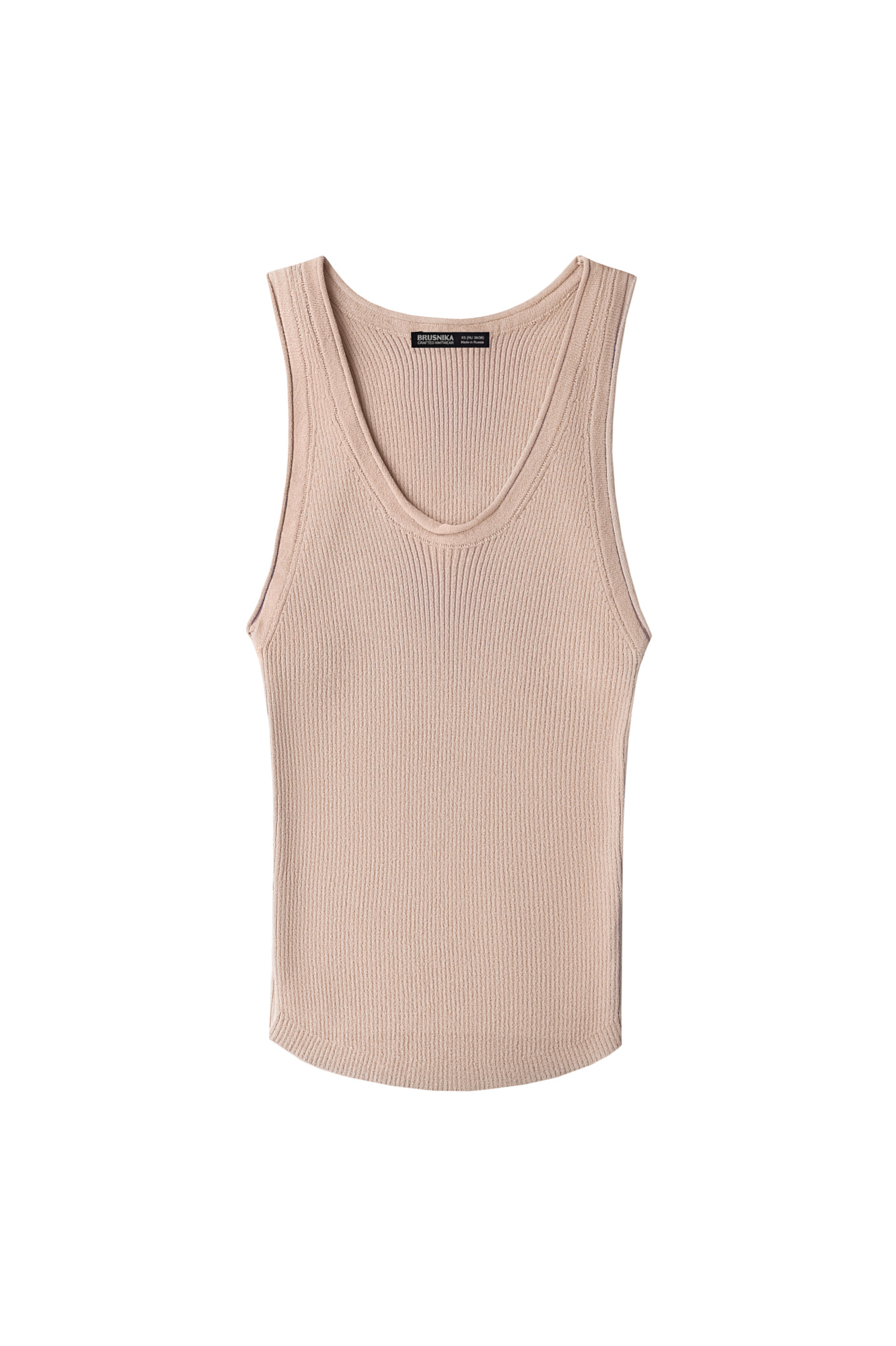 Трикотажная майка из вискозы в рубчик. Модель с глубокой проймой, арочным низом и U-образным вырезом горловины с валиком.