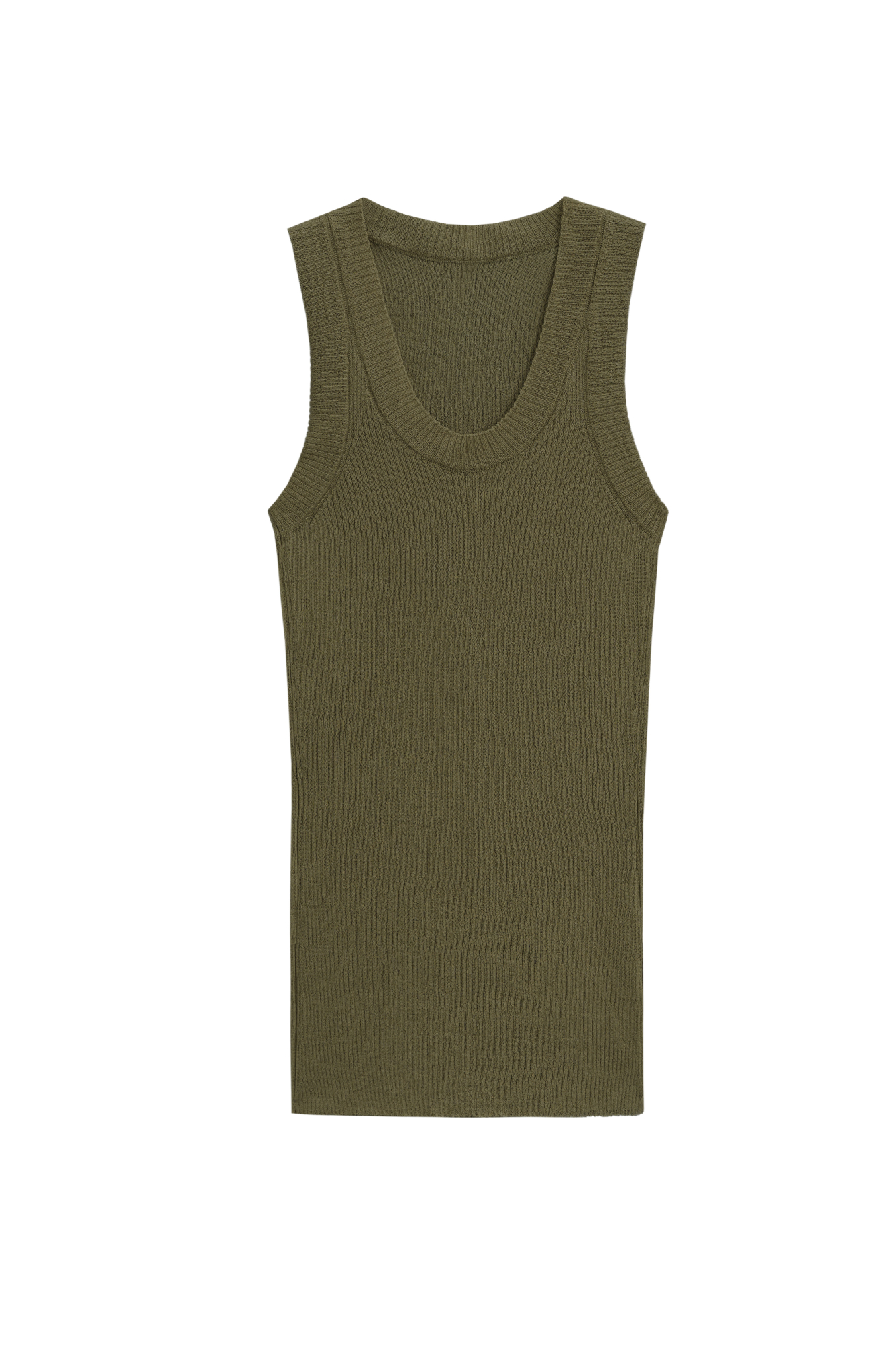 Трикотажный полупрозрачный топ из 100% хлопка. Модель приталенного силуэта, с глубокой проймой и круглым вырезом горловины. Изделие выполнено в рубчик.