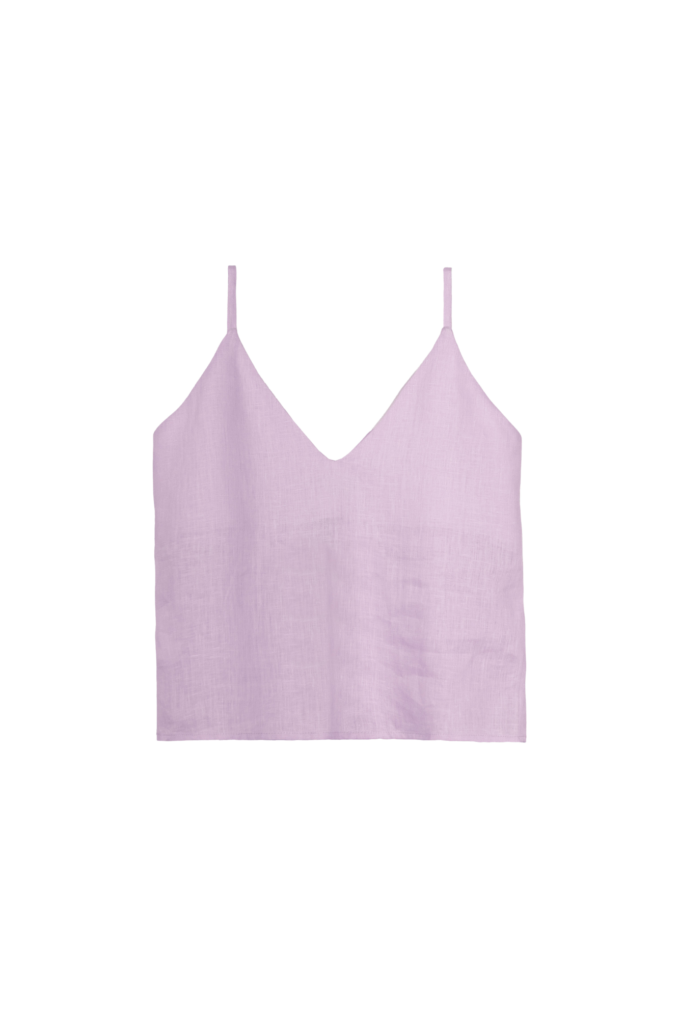 Топ на тонких бретелях из 100% льна добавит свежести в образ, а простота кроя позволит расставить акценты правильно подобранными аксессуарами.