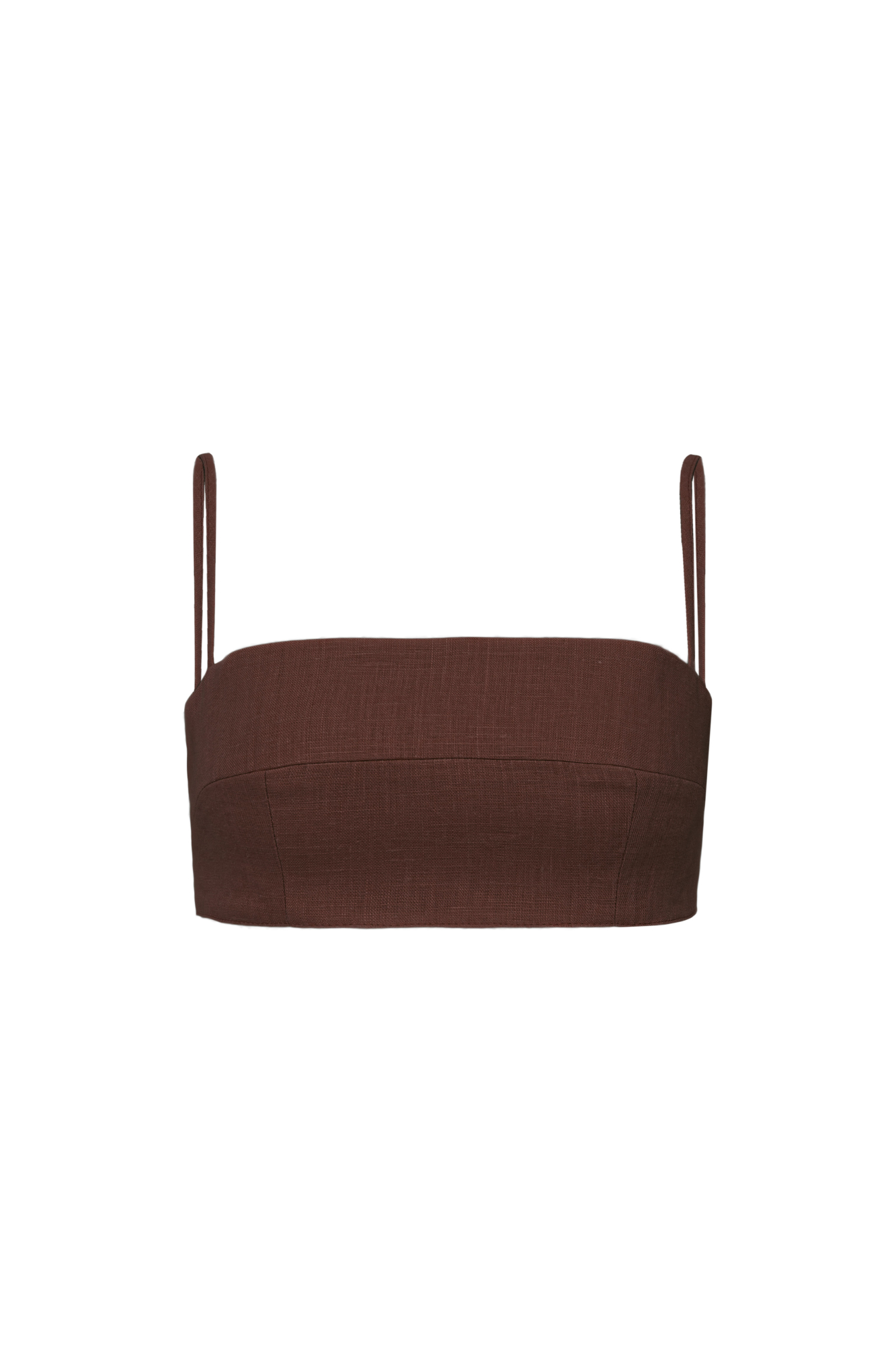 Укороченный топ из 100% льна на тонких бретелях. Дополнить образ можно шортами и рубашкой из такого же материала.