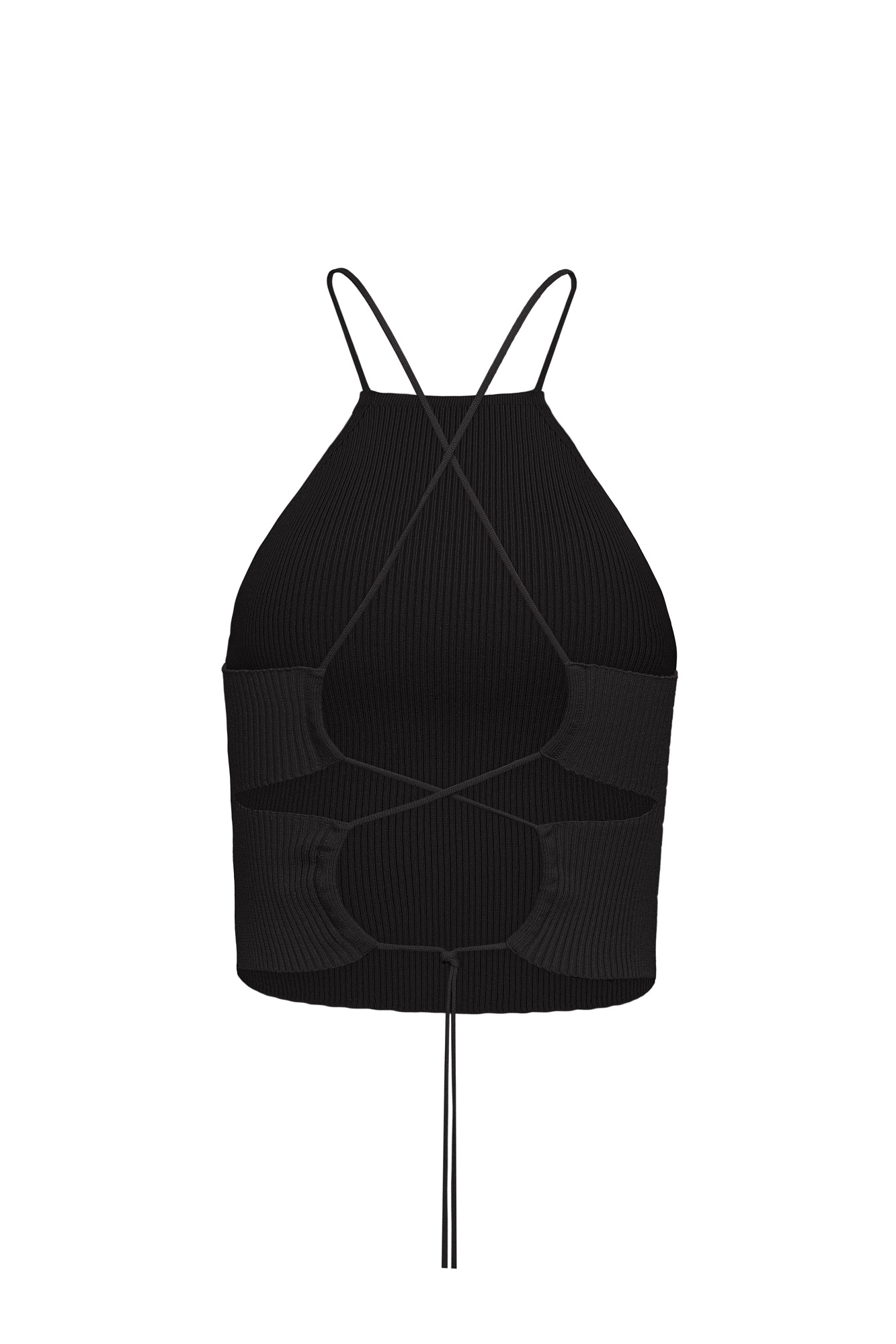 Трикотажный топ в рубчик из вискозы. Открытая спина на кулиске и тонких бретелях.