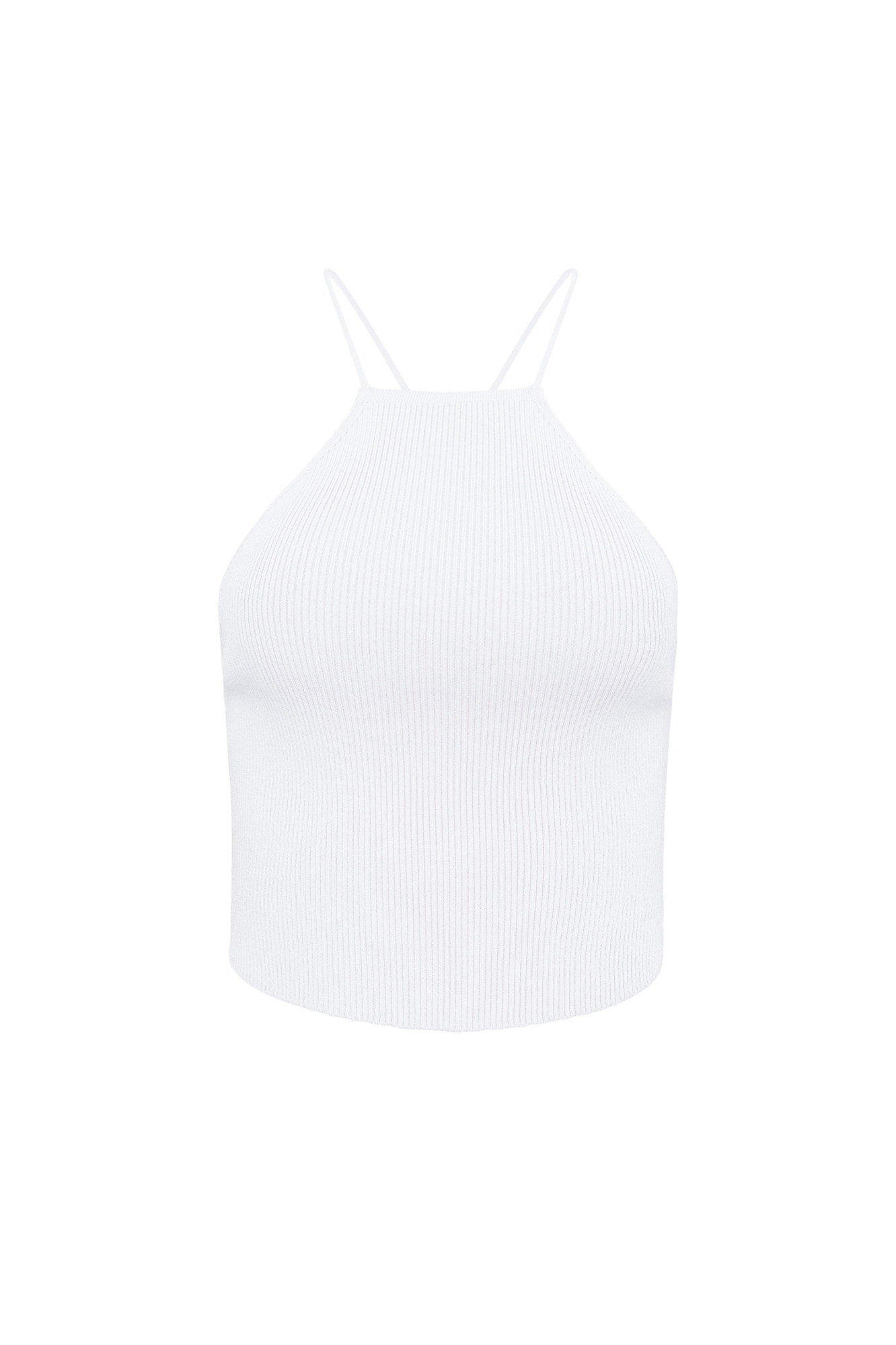 Трикотажный топ в рубчик из вискозы. Открытая спина на кулиске и тонких бретелях.