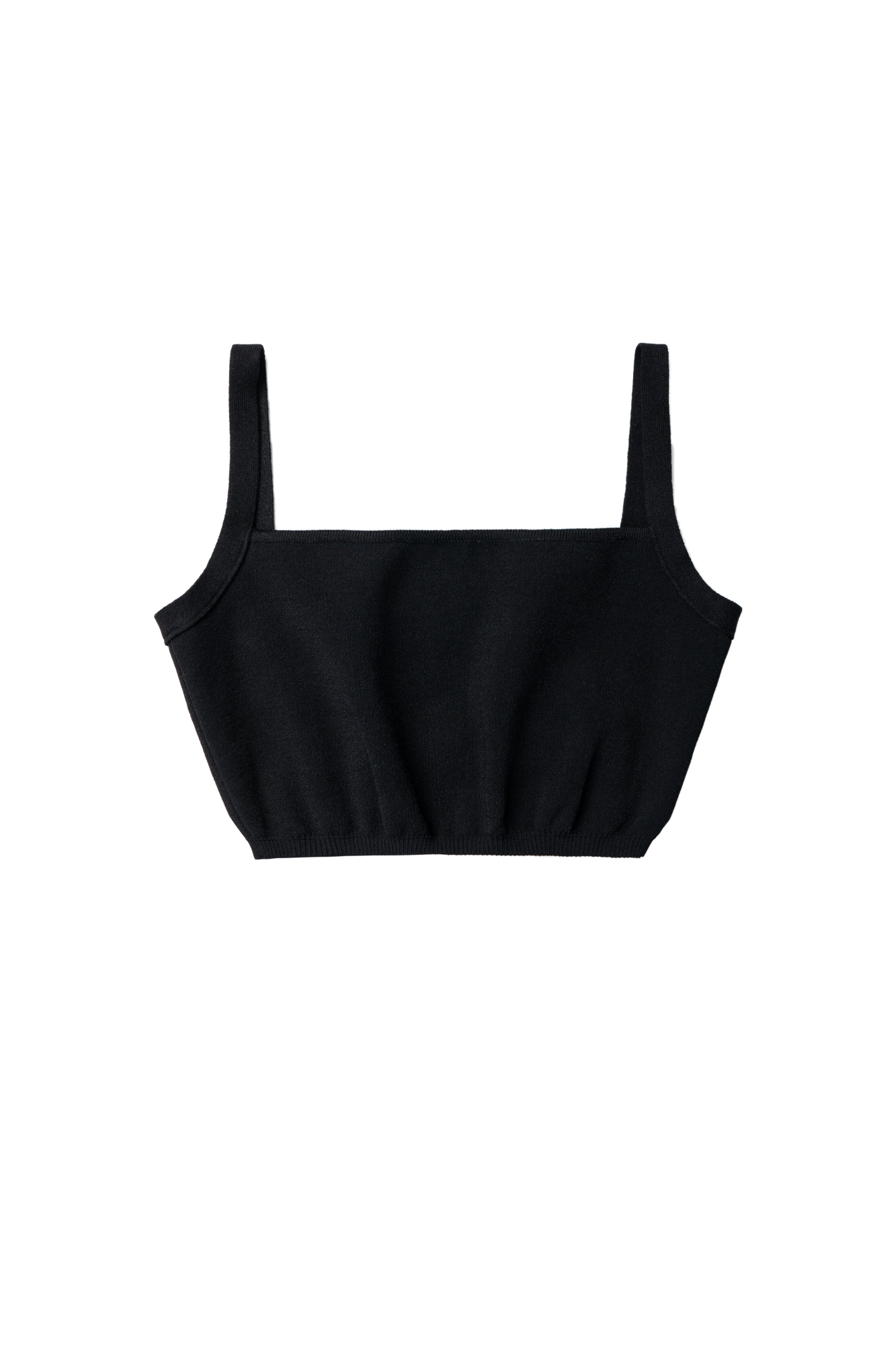 Трикотажный короткий топ из вискозы. Модель на бретелях, с прямым вырезом декольте. Низ изделия выполнен на эластичной резинке.