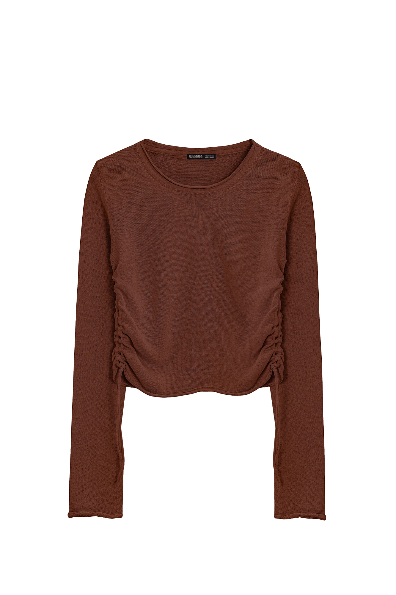 Трикотажный топ из вискозы. Модель прямого кроя, с длинным рукавом, небольшими разрезами на манжетах и круглым вырезом горловины. Кулиски по бокам изделия позволяют регулировать длину и создавать драпировку.