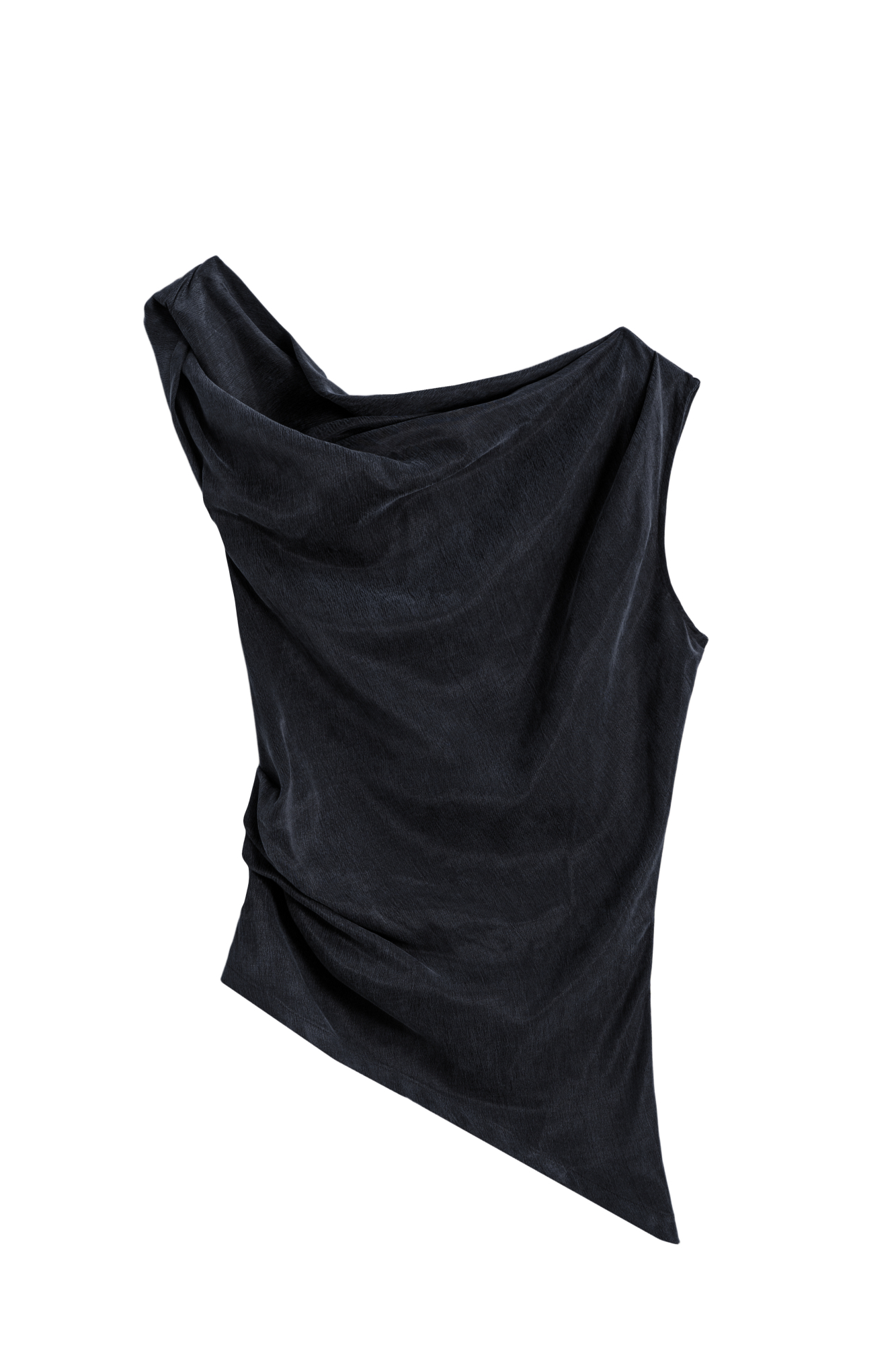 Топ из купры. Модель свободного асимметричного силуэта, с акцентом на плечо, короткими рукавами, драпировкой на талии и мягкими складками.