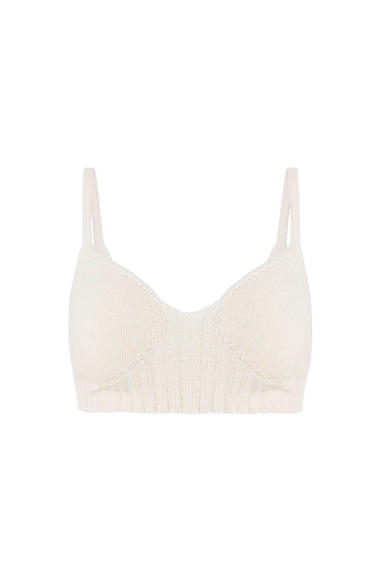 Трикотажный топ из шерсти, с добавлением вискозы и кашемира. Модель на тонких бретелях, с вырезанным лифом.