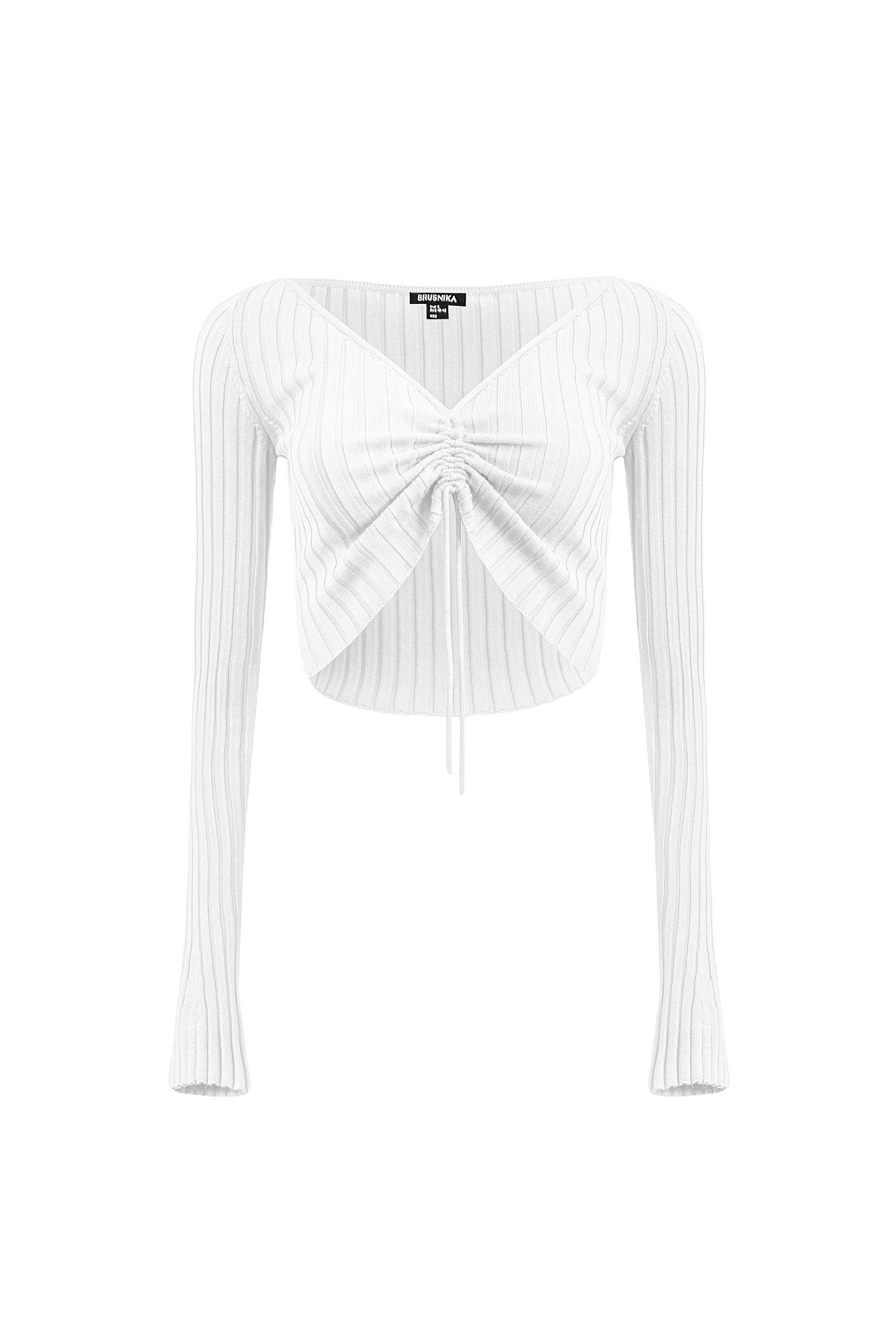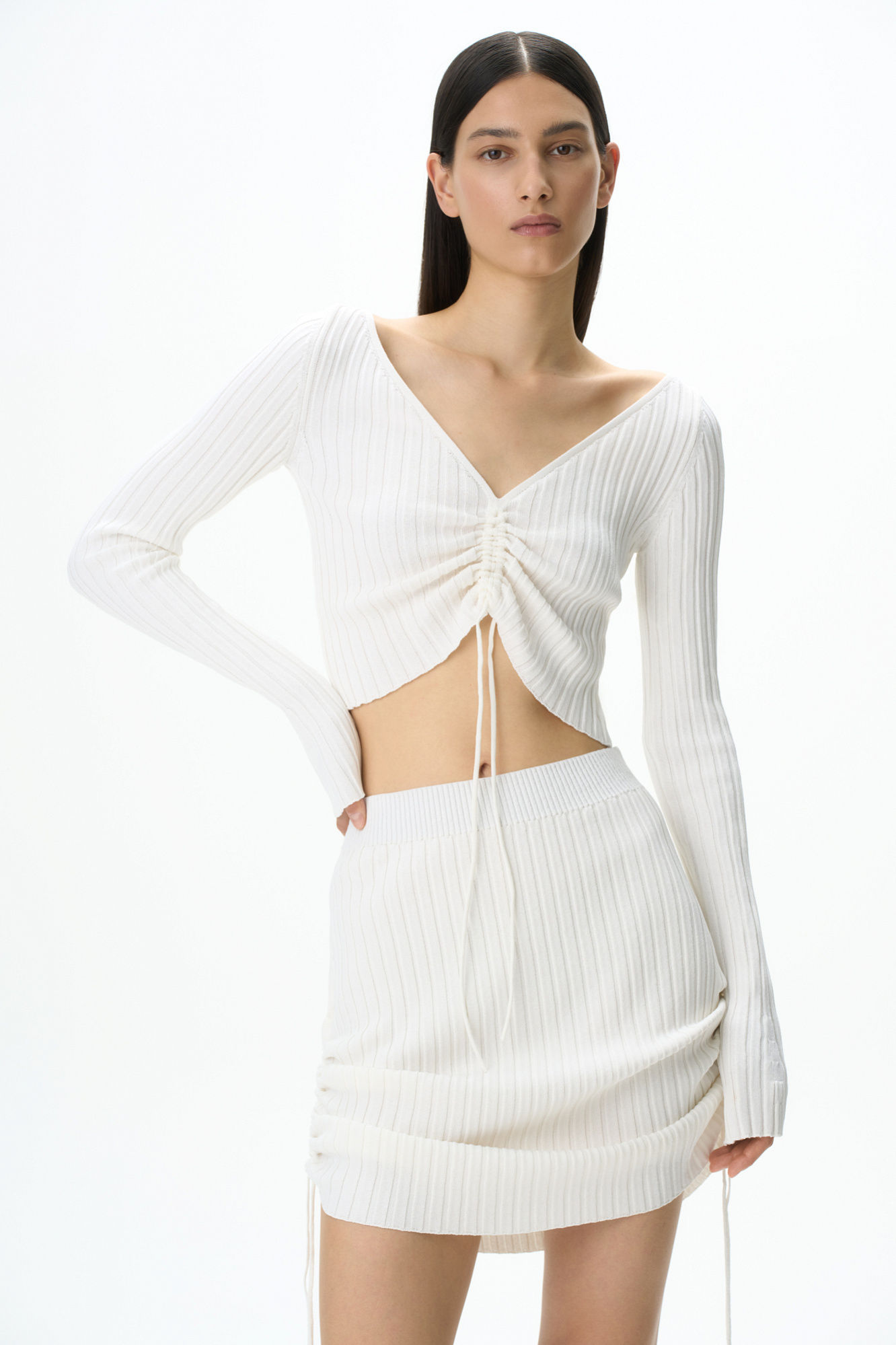 Трикотажный топ из вискозы с длинным рукавом. Модель с V-вырезом и регулируемой кулиской спереди.