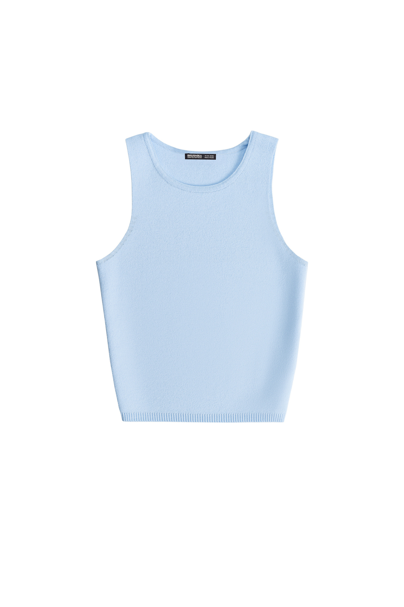 Трикотажный укороченный топ из вискозы. Модель без рукавов с круглым вырезом горловины.
